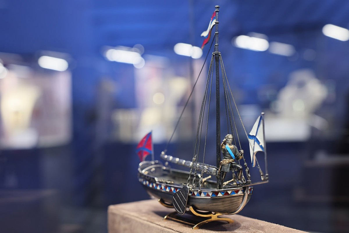 Центральной работой экспозиции стало изделие «Ботик Петра I», выполненное по мотивам модели Ботика Петра Великого фирмы Павла Овчинникова, названной автором «Дедушка русского флота». Это совместный проект Фонда развития художественной промышленности и ювелирного искусства и Ювелирного дома RODIS. Впервые его представили на Московском финансовом форуме в 2022 году в рамках выставки «Петр I и ювелирное дело в России».