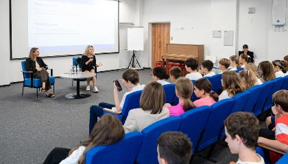 В многопрофильной гимназии «Сириус» в рамках акции «Поделись своим знанием», которую проводит Общество «Знание», прошла мотивационная встреча с призёром Олимпийских игр, чемпионкой мира и Европы по скелетону, мастером спорта России Еленой Никитиной и основателем социального проекта «Команда Звёздный Десант», членом экспертного совета Комитета ГосДумы по молодёжной политике Златой Чепурной.
