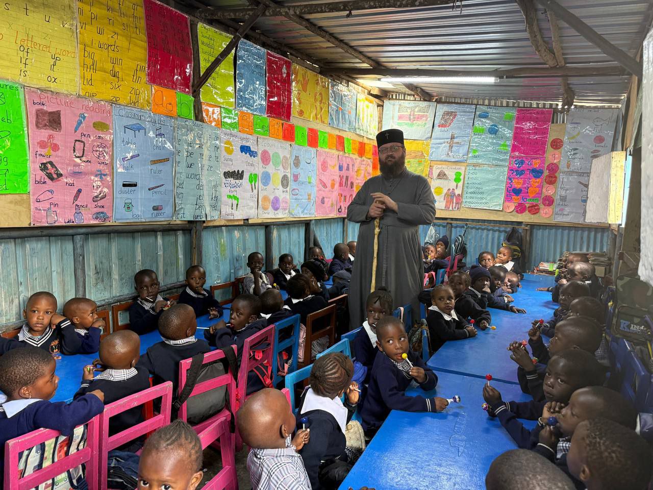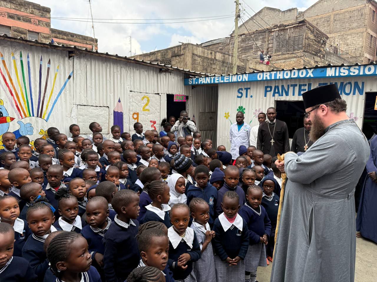 Служба коммуникации ОВЦС, 19.09.2025. 18 сентября Патриарший экзарх Африки митрополит Каирский и Северо-Африканский Константин в сопровождении председателя Миссионерского отдела Патриаршего экзархата Африки иерея Георгия Максимова посетил приход великомученика Пантелеимона в столице Кении г.  Найроби, при котором действует начальная школа. Архиерея приветствовали прихожане, преподаватели и воспитанники школы.