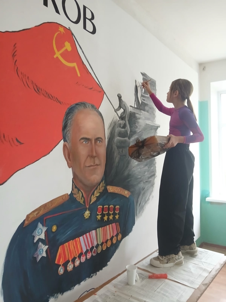 Сегодня 26 школ Верхневолжья участвуют в патриотическом проекте «Лица героев», по которому на фасадах или внутри образовательных организаций размещают портреты героев военных действий, героев труда, выдающихся деятелей науки и культуры. В средней школе №2 поселка Спирово появился мурал с портретом четырежды Героя Советского Союза, Маршала Советского Союза Георгия Константиновича Жукова. Художественная композиция создана преподавателем отделения «Изобразительное искусство» детской школы искусств Татьяной Ермишкиной и ее учениками.