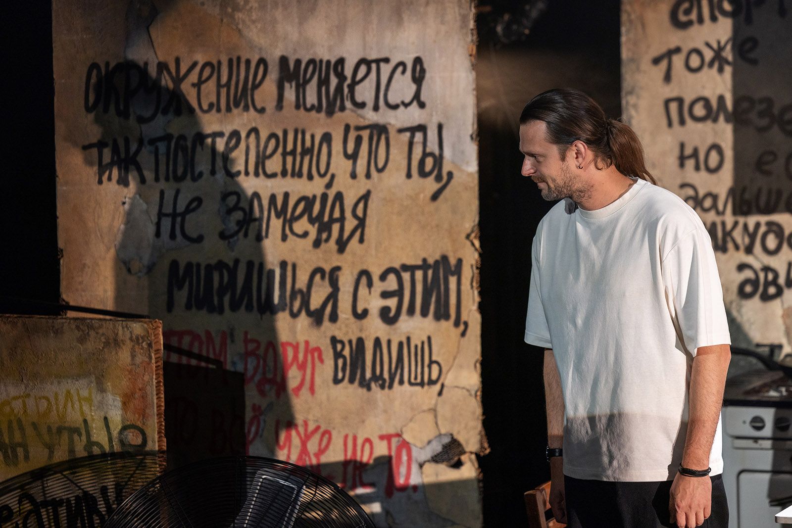 Во вселенной Михайлова время и место становятся универсальными, а зритель и читатель в итоге остаются один на один не с героями и их судьбами, а с собственным подсознанием — миром символов и архетипов. Этот эффект погружения в транс и взял за основу своего спектакля-путешествия Егор Перегудов. В новом сезоне публике предстоит снова погрузиться в невыносимую правду Романа Михайлова, но выхода не будет ни у персонажей, ни у зрителей, в том числе и в самом буквальном смысле. Об этом и других трудностях просмотра заботливо предупредит бодрый (и несколько глумливый) голос диктора из динамиков над сценой.