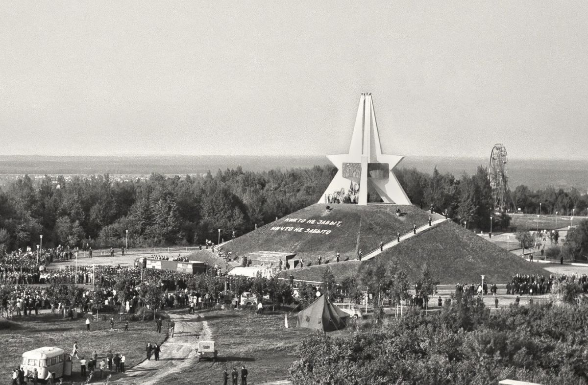 В сообществе «Брянск глазами разных поколений» опубликован полувековой архивный снимок. На фотографии запечатлен момент празднования Дня города 17 сентября 1976 года на Кургане Бессмертия.Калужский рэпер СКАТ выпустил клип о родном городе с динозаврами и Циолковским