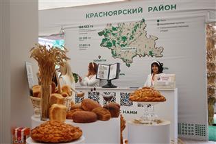 В шатре Красноярского района для посетителей выставки проводили целую экскурсию с рассказом о том, какая продукция производится на территории района.