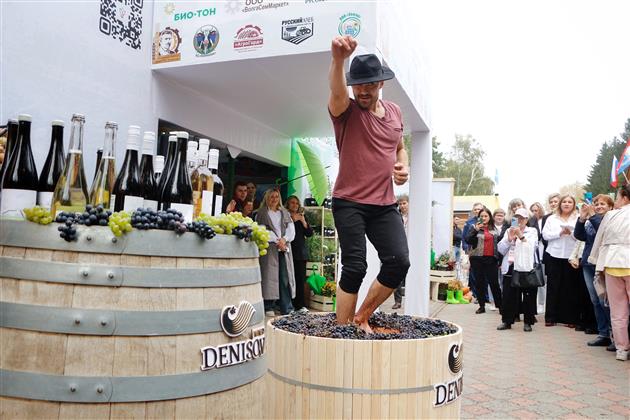 Например, в этот раз зрителей покорил танец в стиле Адриано Челентано в чане с виноградом на стенде Безенчукского района.