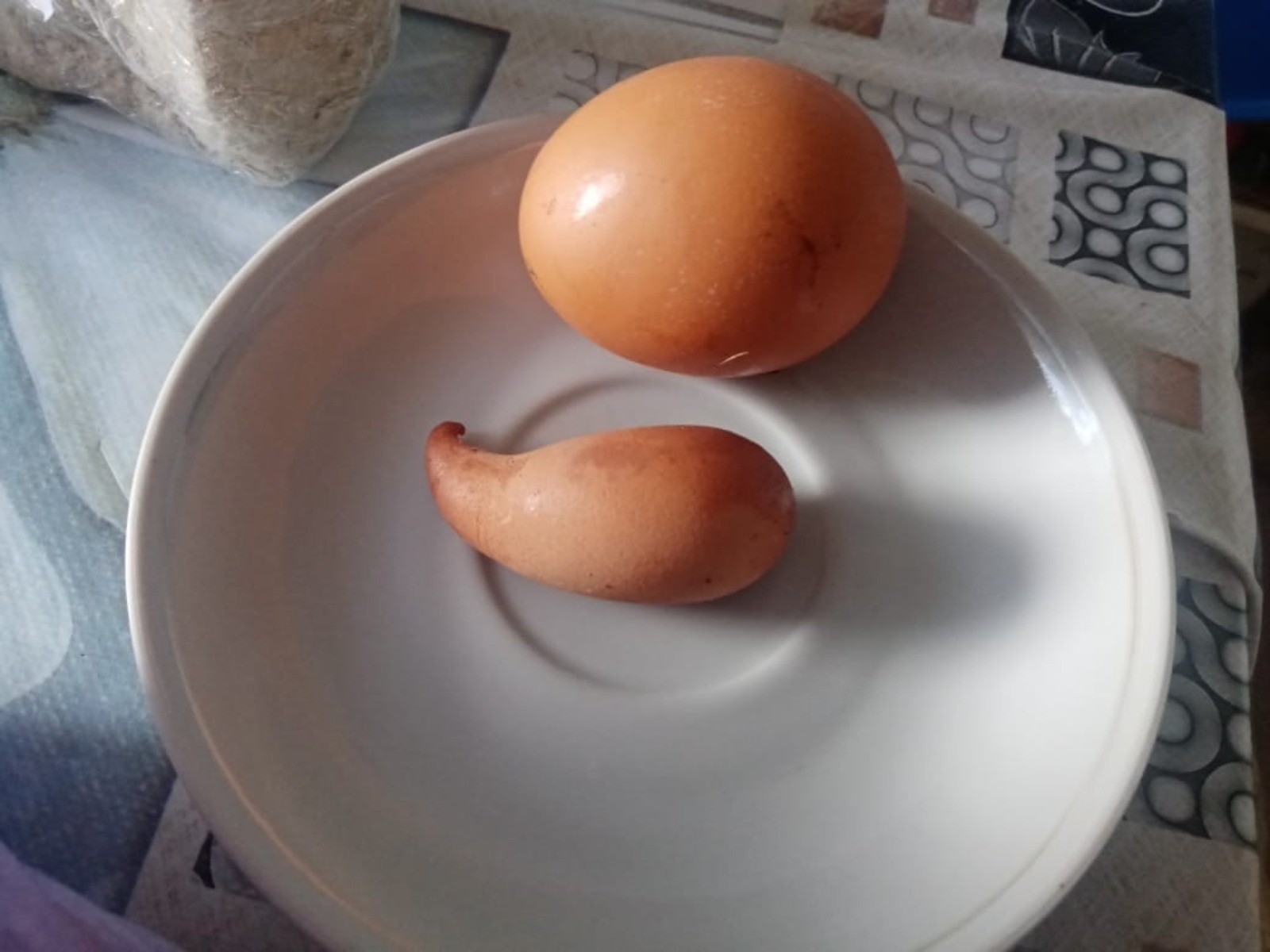 Хозяева говорят, что до этого их курица-ряба несла обычные яйца. Нормальные, круглые, очень полезные и питательные! И вдруг одно яйцо оказалось неординарным, по их словам, оно похоже на запятую. Произошла какая-то аномалия, и яйцо до конца не сформировалось.