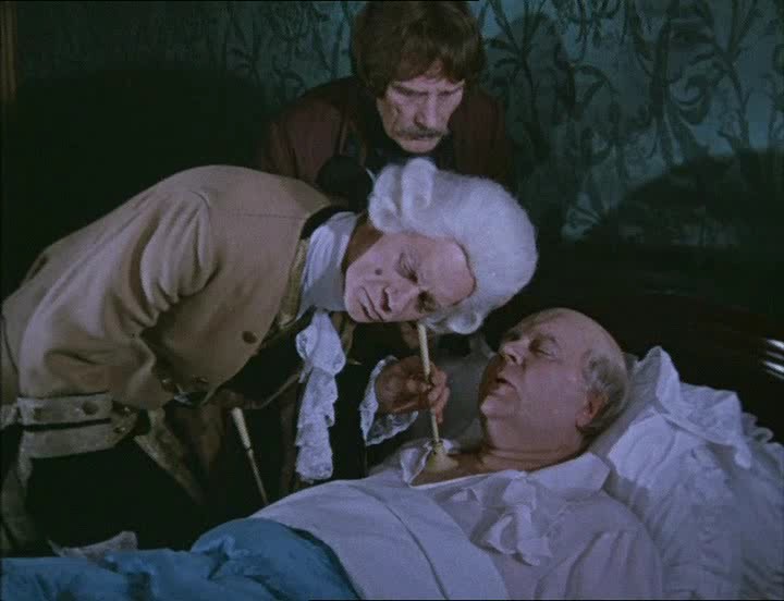 Больной Ломоносов, лейб-медик Гаук и верный Ермолаич. Кадр из фильма «Дым Отечества»