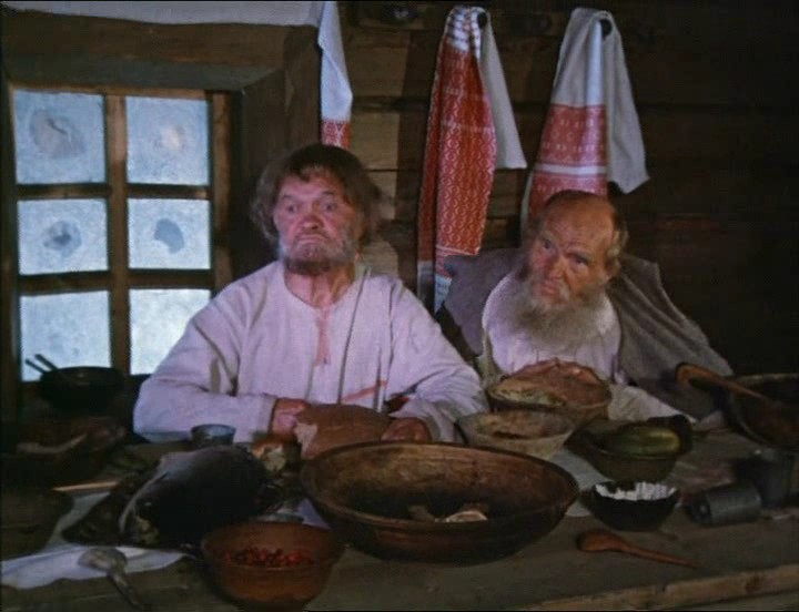 Двинские крестьяне за трапезой. Кадр из фильма «Дым Отечества»