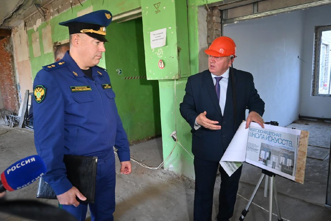 После этого Сергей Лапин с заместителем Председателя Правительства республики Раисой Цыбизовой и и.о. регионального министра сельского хозяйства и продовольствия посетил еще один объект – детскую школу искусств № 1 в г. Ардатов, на котором также ведутся работы по капитальному ремонту здания. Несмотря на то, что до полного завершения ремонта остается чуть больше месяца, на объекте не выполнено около 60 % предусмотренных контрактом работ, в связи с чем прокурором и.о. министра сельского хозяйства и продовольствия республики объявлено предостережение о недопустимости нарушения закона.