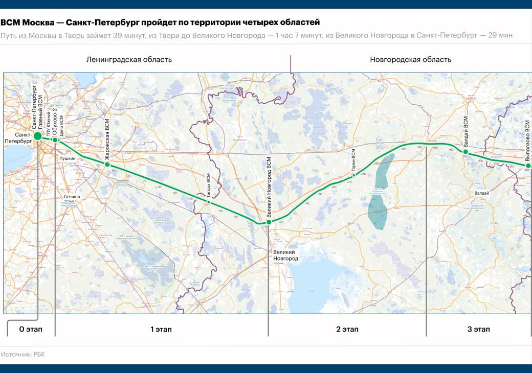 Перспективы высокоскоростных ЖД простираются и дальше: до 2050 года планируется создание веток Москва — Казань — Екатеринбург (ВСМ-2 «Восток»), Москва — Воронеж — Ростов-на-Дону — Адлер (ВСМ-3 «Юг»), Москва — Минск (ВСМ-4 «Союз») и Москва — Рязань (ВСМ-5). Общая протяжённость скоростных дорог к 2050 году должна составить 21 тыс. км, объединив 16 городов-миллионников. По оценке Минтранса, к 2030 году направление Москва — Тверь — Великий Новгород — Санкт-Петербург сможет обслуживать 43,4 млн пассажиров в год.