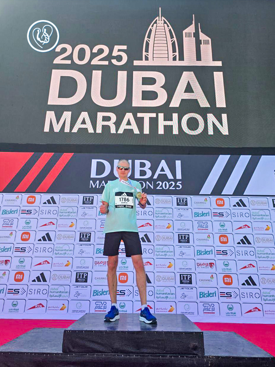 Уже спустя неделю после московского полумарафона молодой человек наметил следующую амбициозную цель – пробежать полный марафон, 42 км. Учитывая предыдущие ошибки, он обратился к тренеру и начал заниматься под руководством профессионала. В его «физкультурном рационе» появились не только регулярные пробежки, но и занятия в бассейне, работа со штангой в зале, отдельное внимание к режиму отдыха и сна, к питанию и распределению нагрузок. Итогом стала очередная блестящая победа нашего пациента: марафон в Дубае в 2025 году он пробежал с легким сердцем и легким дыханием. «Я, конечно, волновался за свое сердце – а вдруг на каком-нибудь этапе дистанции устанет, сорвется с ритма, не позволит бежать дальше… Но ничего такого не произошло. Мое сердце работало, как часы»!