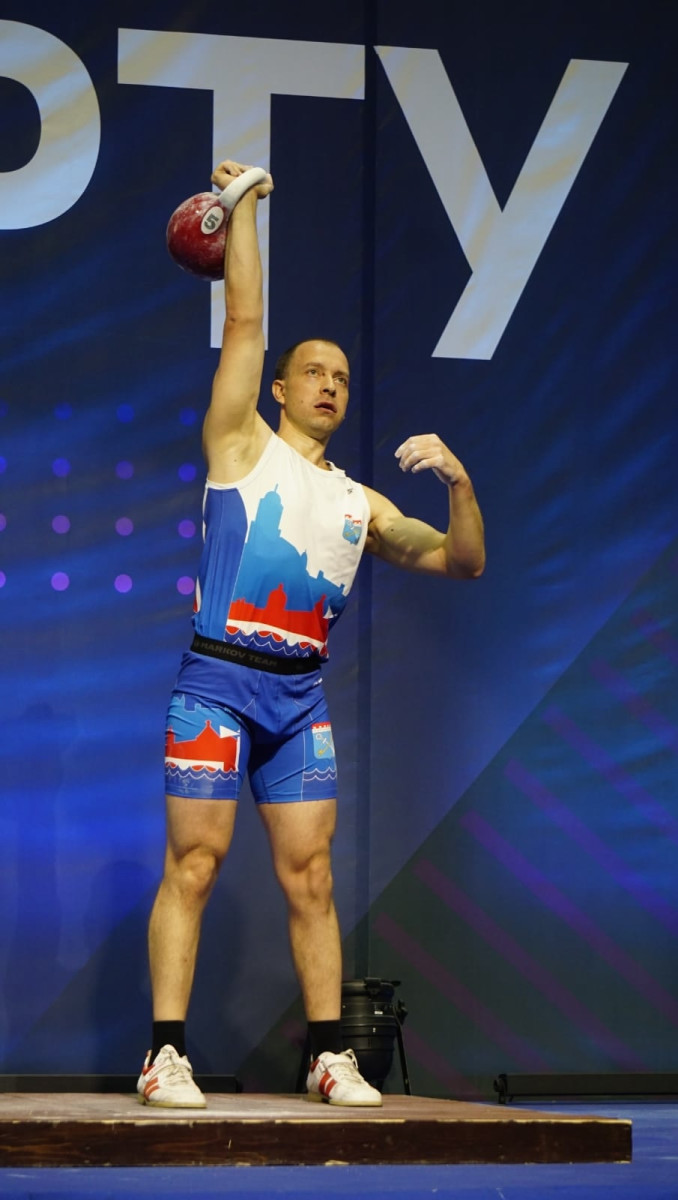 Спортсмен из Тихвина выступил в дисциплине «рывок» среди мужчин до 85 кг. Атлету удалось выполнить 165 подъемов гири весом 32 килограмма.