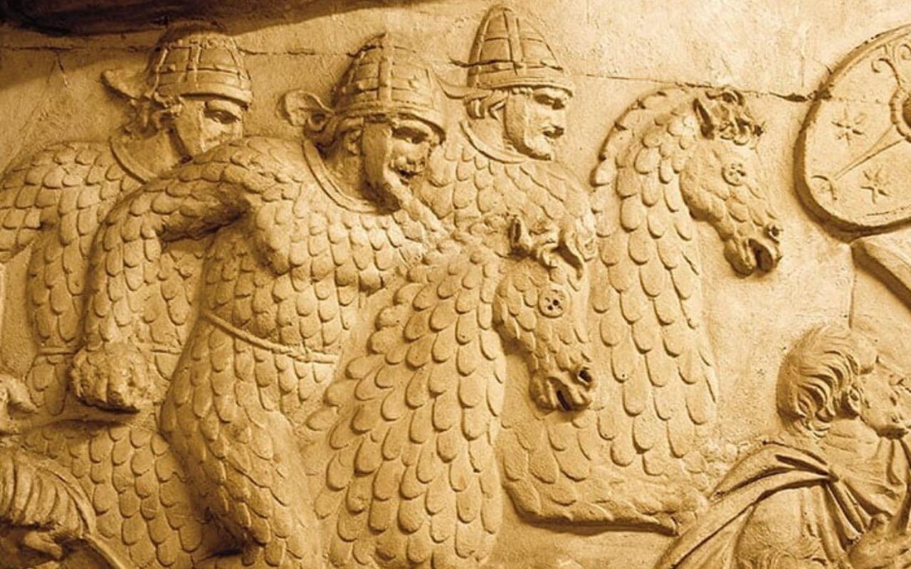 1) Идеализированное художественное изображение сарматов в панцирях с колонны Траяна (I век н.э.)
