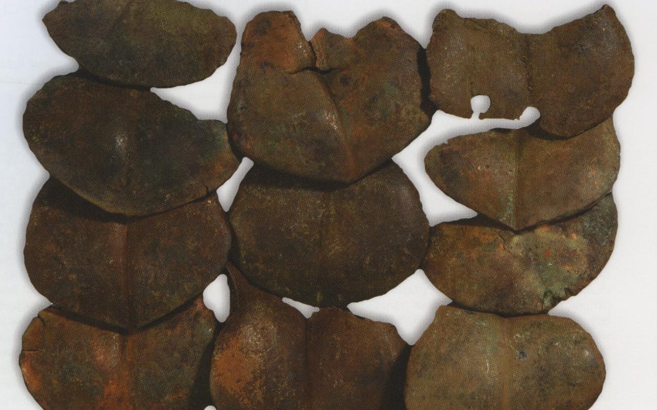 2) Имитации в бронзе панцирных пластин из лошадиных копыт. Монголия, эпоха хуннов.
