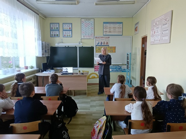 С целью патриотического воспитания подрастающего поколения сотрудники ЛИУ-7 посетили муниципальное образовательное учреждение «Начальная школа – детский сад» в поселке Полевой Кирсановского округа. Член женского совета, ветеран УИС Марина Никитина провела для учеников 1-4 классов «Урок мужества».