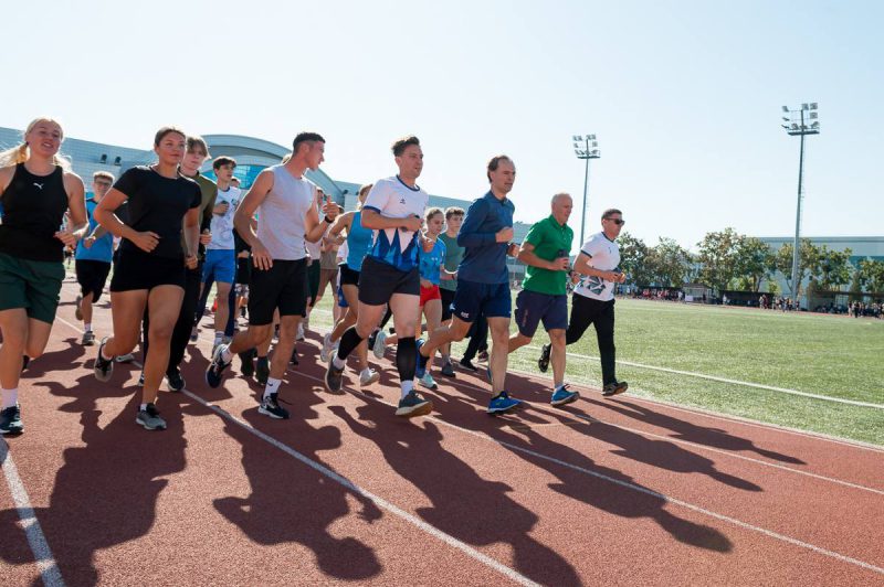 Кросс с ректором университета — яркое и интересное событие, а еще отличный старт учебного года! Первокурсники БГУФК, ректор Сергей Борисович Репкин, первый проректор Владимир Владимирович Клинов, проректор по учебной работе Галина Ивановна Башлакова, деканы и кураторы учебных групп объединились вместе на стадионе университета в рамках спортивно-мотивационной встречи «Спринт в студенческую жизнь».