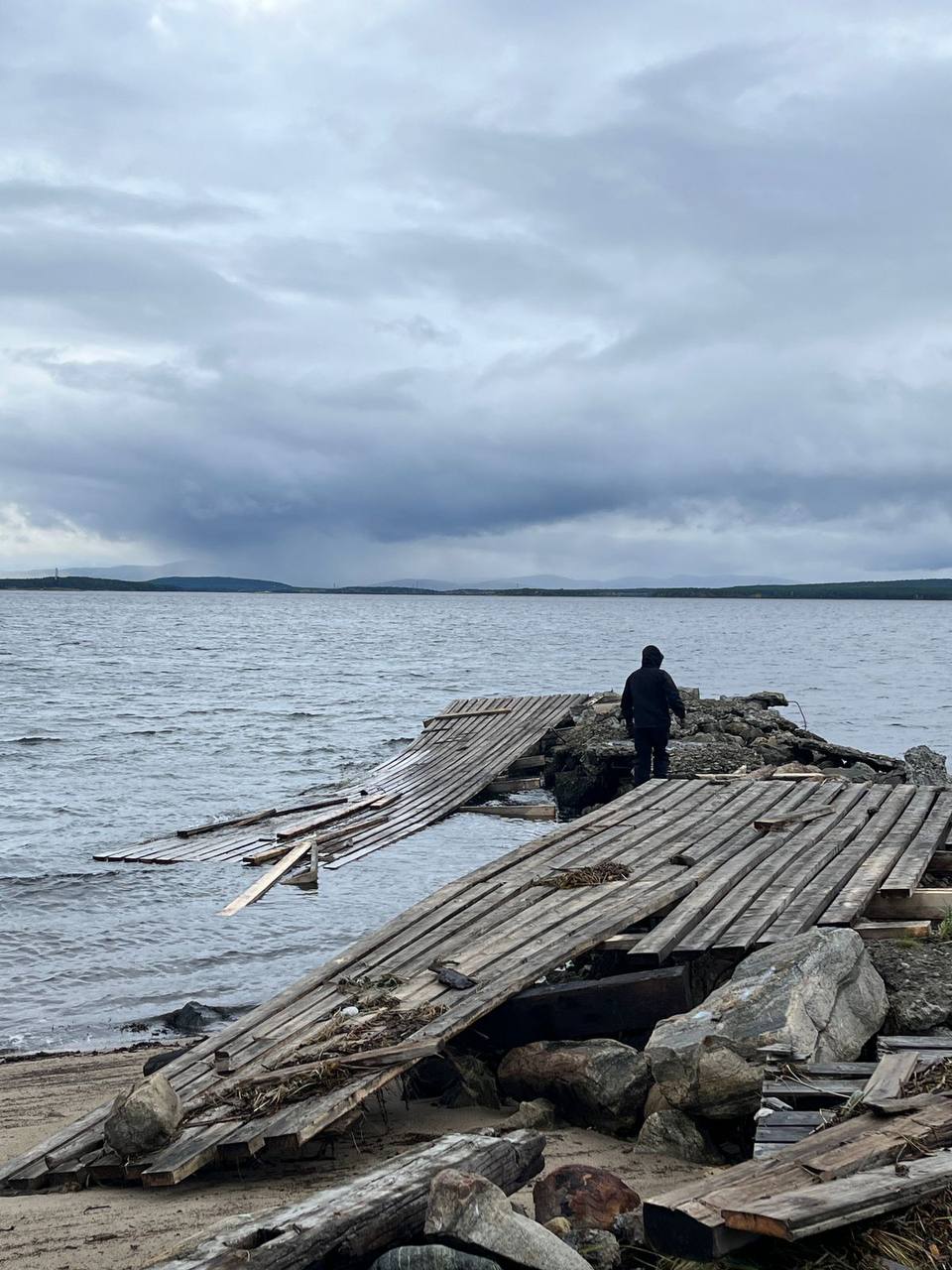 Кроме того, смыло деревянный настил на причале.