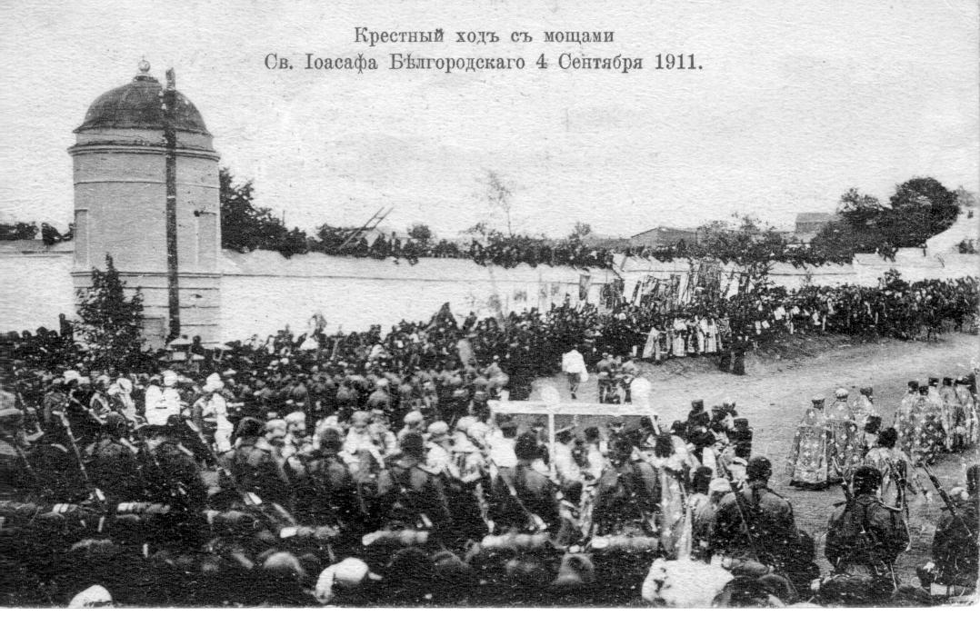 Власти и духовенство Белгорода ожидали участия Императора Николая II и членов его семьи в сентябрьских торжествах 1911 года. Но приезд Царя не состоялся по не зависящим от него причинам. Лишь в декабре того же года Царская семья заехала в Белгород и приложилась к мощам святителя Иоасафа. В дни его канонизации на Белгородской земле Царскую фамилию представляли Великий князь Константин Константинович Романов (знаменитый поэт К.Р.) и Великая княгиня Елизавета Федоровна. В ее дневнике есть запись о духовной радости, которую она испытала, проезжая однажды через Белгород и чувствуя, что молитва святого Иоасафа обитает не только в пещерке, но и в окрестностях.