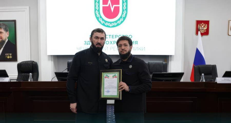 В ходе заседания Магомед Даудов вручил министру здравоохранения ЧР Адаму Алханову благодарственное письмо Правительства ЧР за личный вклад в развитие региональной системы здравоохранения, добросовестную работу и высокий профессионализм.