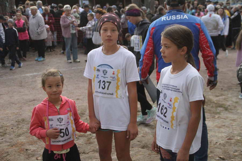 До старта ещё 40 минут, а в лесу многолюдно — уже выдано две тысячи стартовых номеров. Кто-то подходит к столу регистрации, кто-то крепит номер к футболке, другие уже разминаются. По надписям на спортивной форме можно изучать географию региона: тут и Новоалтайск, и Павловск, и Первомайский район, и неблизкое Шипуново.
