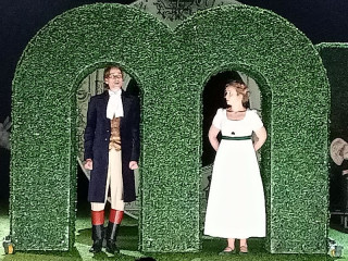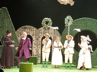 Оставляя зрителей гадать, это - ошибка в ведении спектакля или задумка режиссера, действие на сцене набирает обороты. Персонажей немало, и поначалу непросто разобраться кто есть кто. Слуг от господ отличить можно по характерным костюмам, а вот среди мэтров как представителей церкви сначала трудно понять – почему их два. И только по программке понимаешь, что мэтр Блазиус – это наставник сына владельца имения. Этого-то сына по имени Альфред и ждут в такой суете в имении, куда одновременно с ним должна прибыть и племянница барона Камилла.