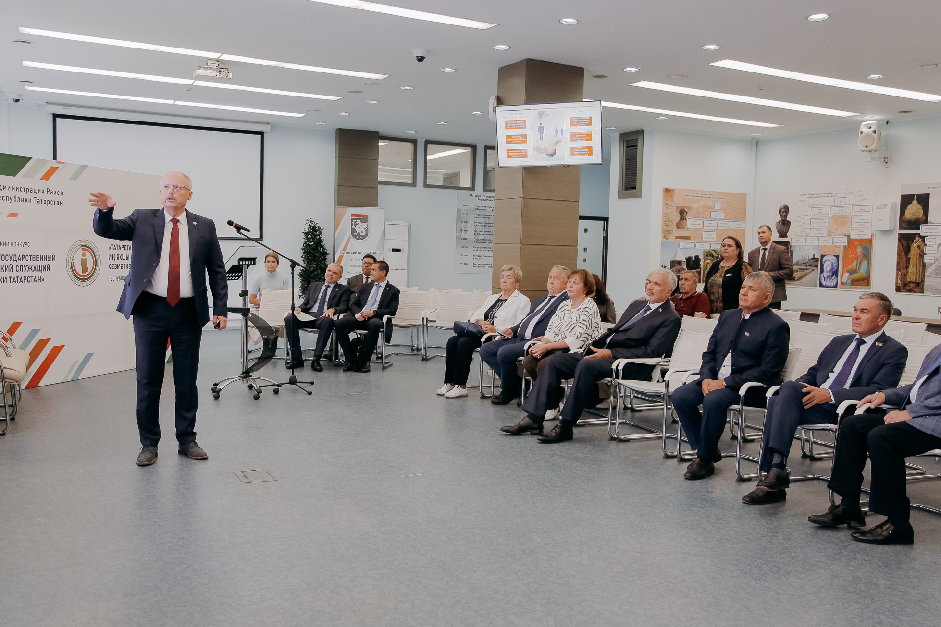 Перед началом заседания участники ознакомились с деятельностью вуза и достижениями Высшей школы государственного и муниципального управления КФУ за последние 5 лет, о которых рассказал директор ВШГМУ Игорь Привалов.