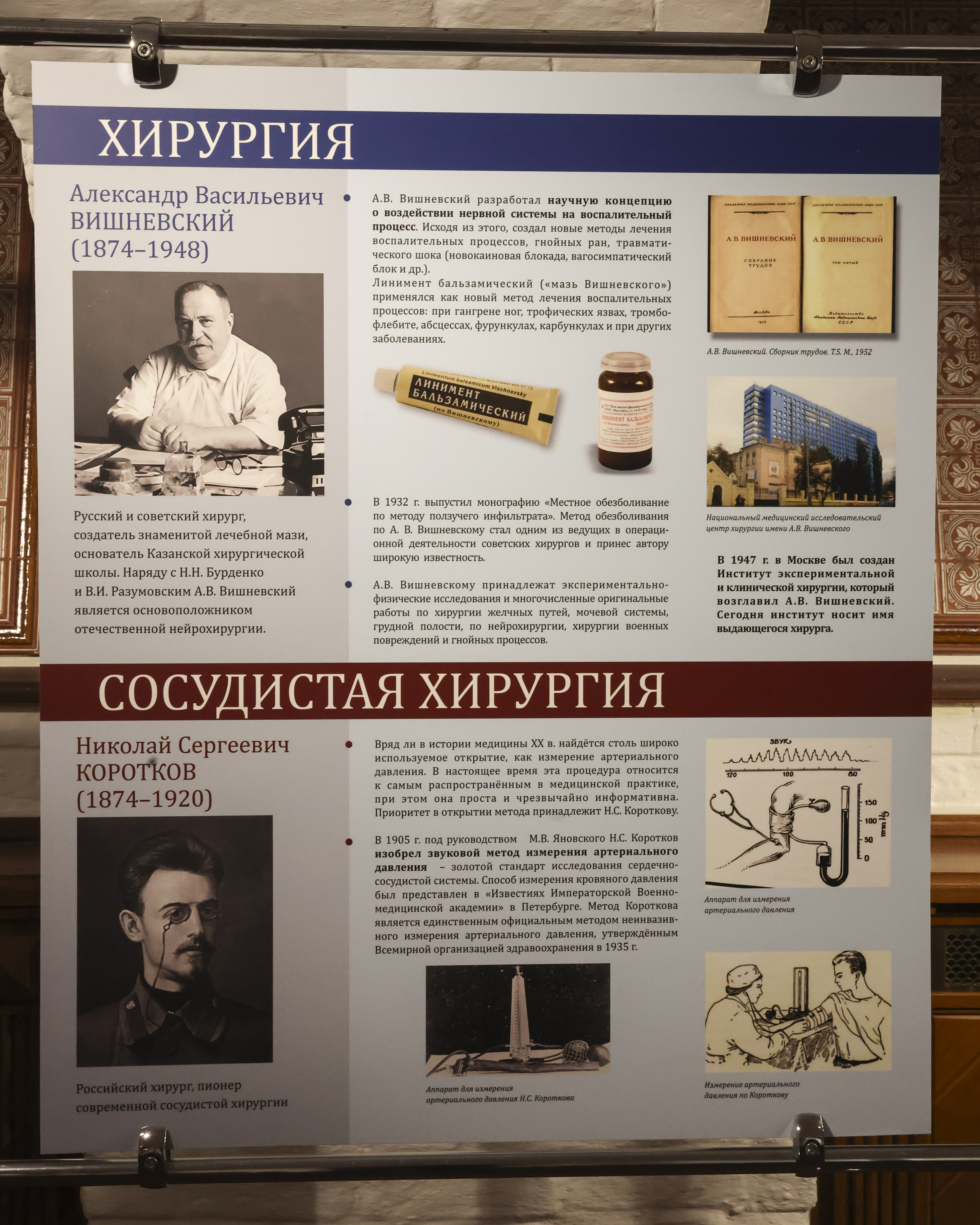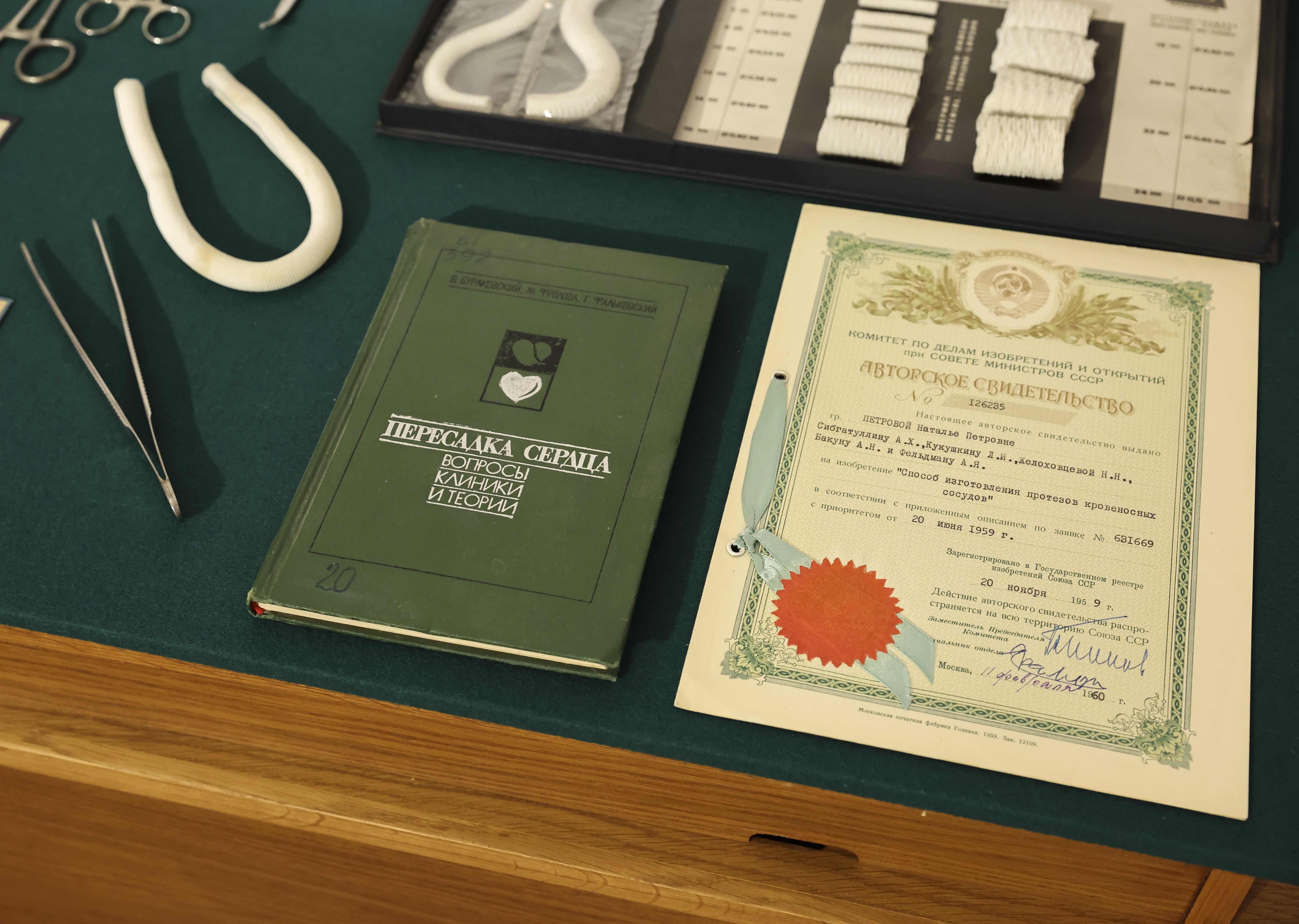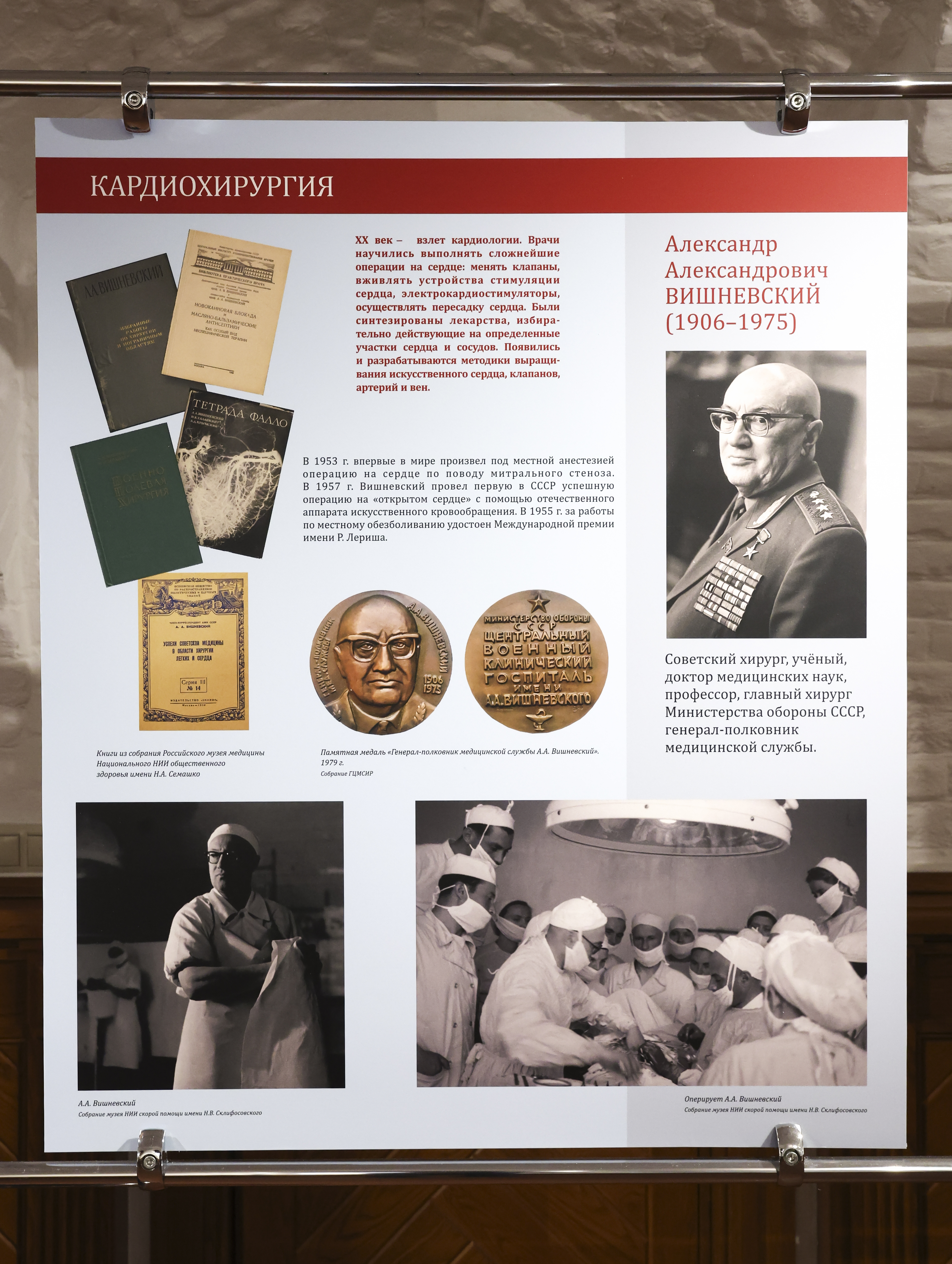 Среди её наиболее примечательных экспонатов — аппарат Илизарова, хирургические инструменты, комплект сосудистых протезов и другие предметы. Выставка подготовлена совместно с Национальным медицинским центром сердечно-сосудистой хирургии имени А.Н. Бакулева и Российским музеем медицины Национального НИИ общественного здоровья имени Н.А. Семашко. Посетить её можно до 23 октября в рамках экскурсий по Дому РИО.