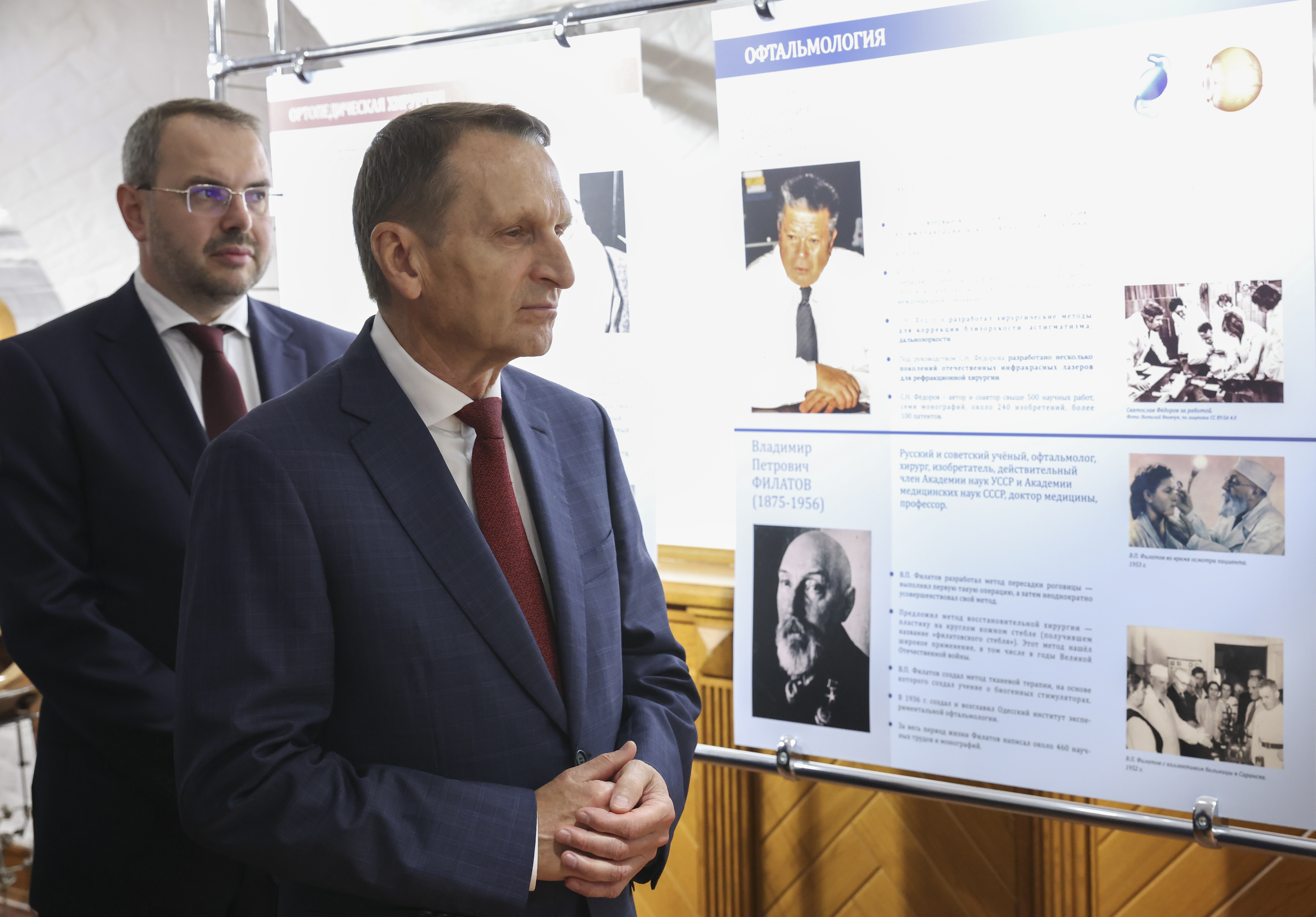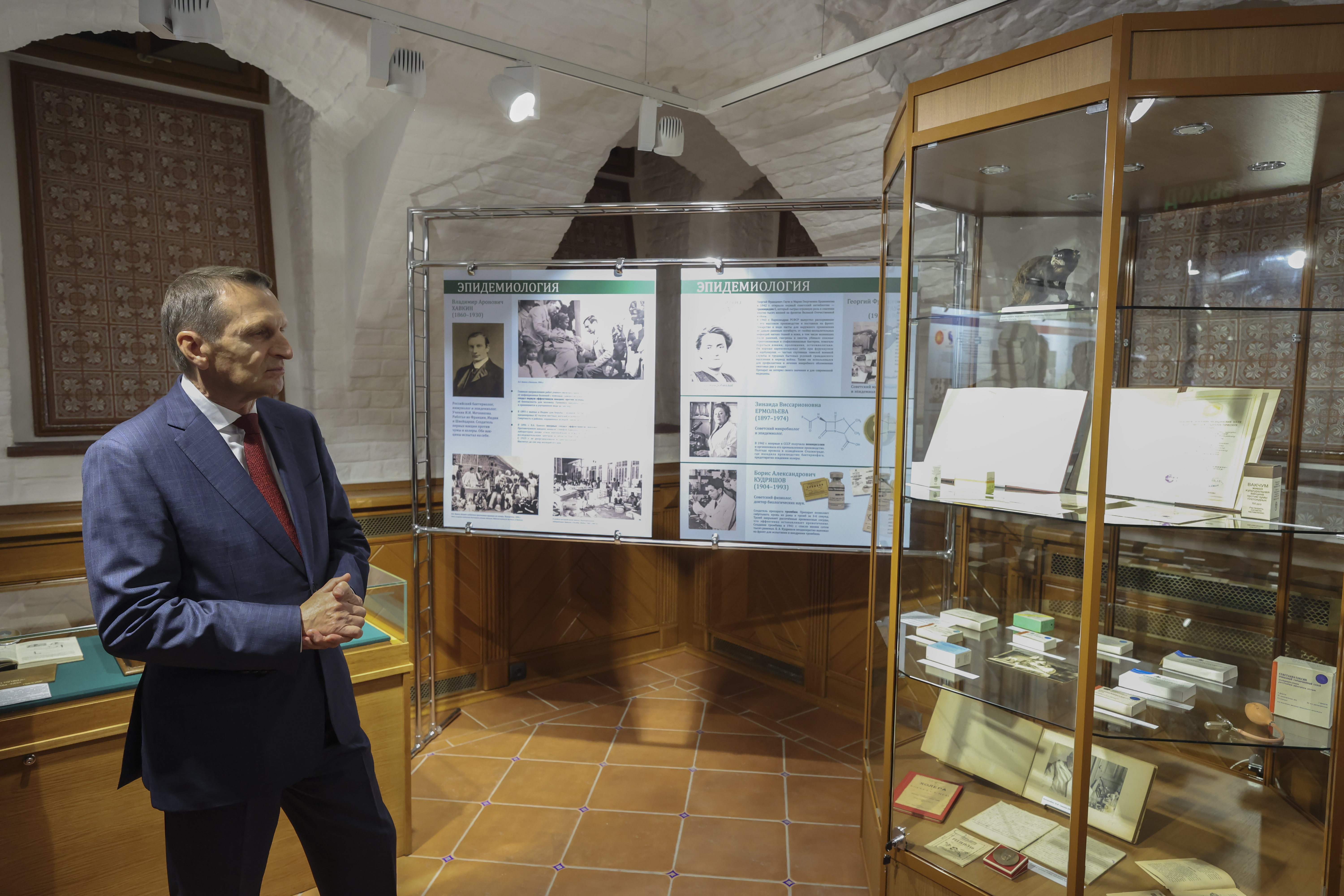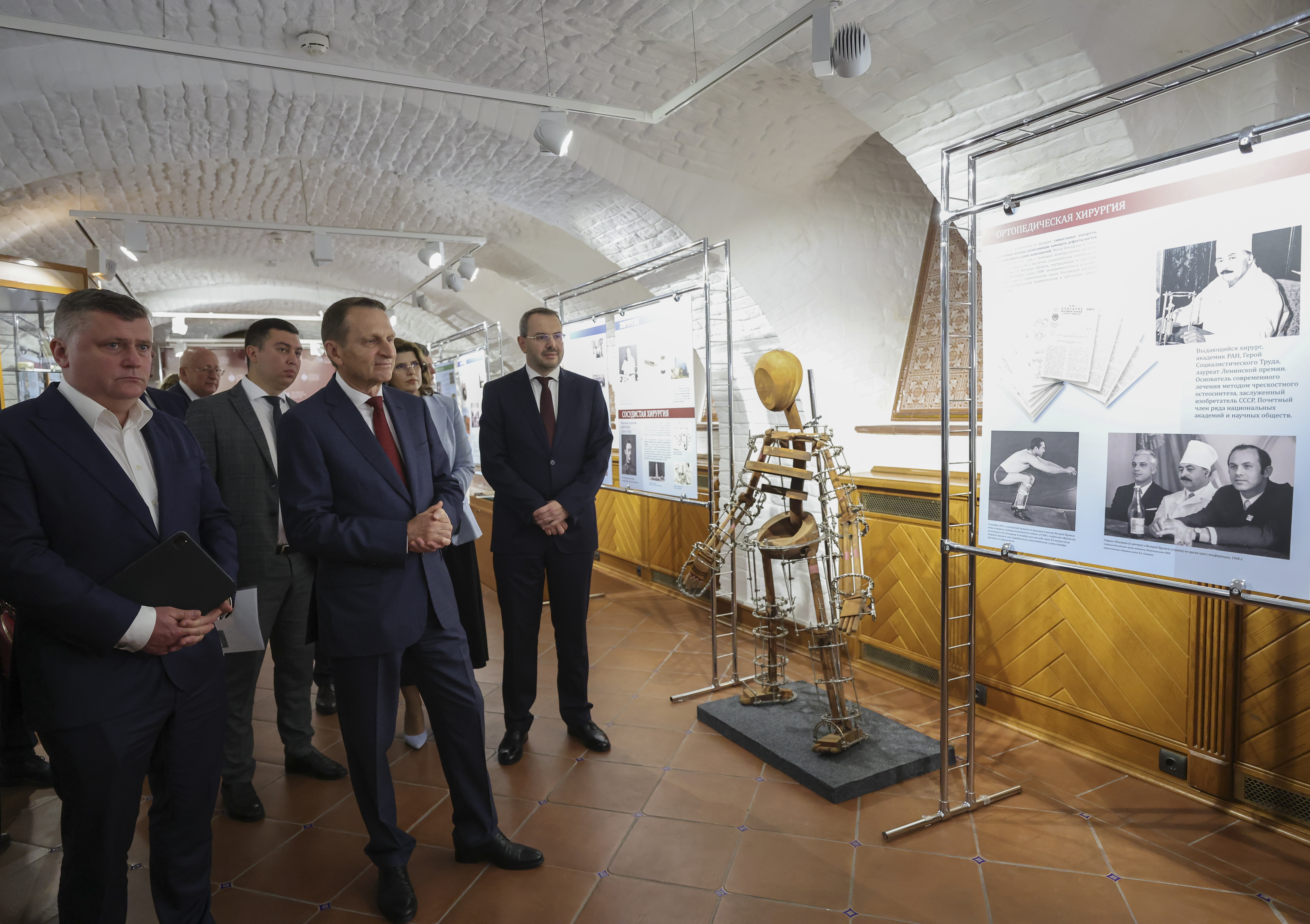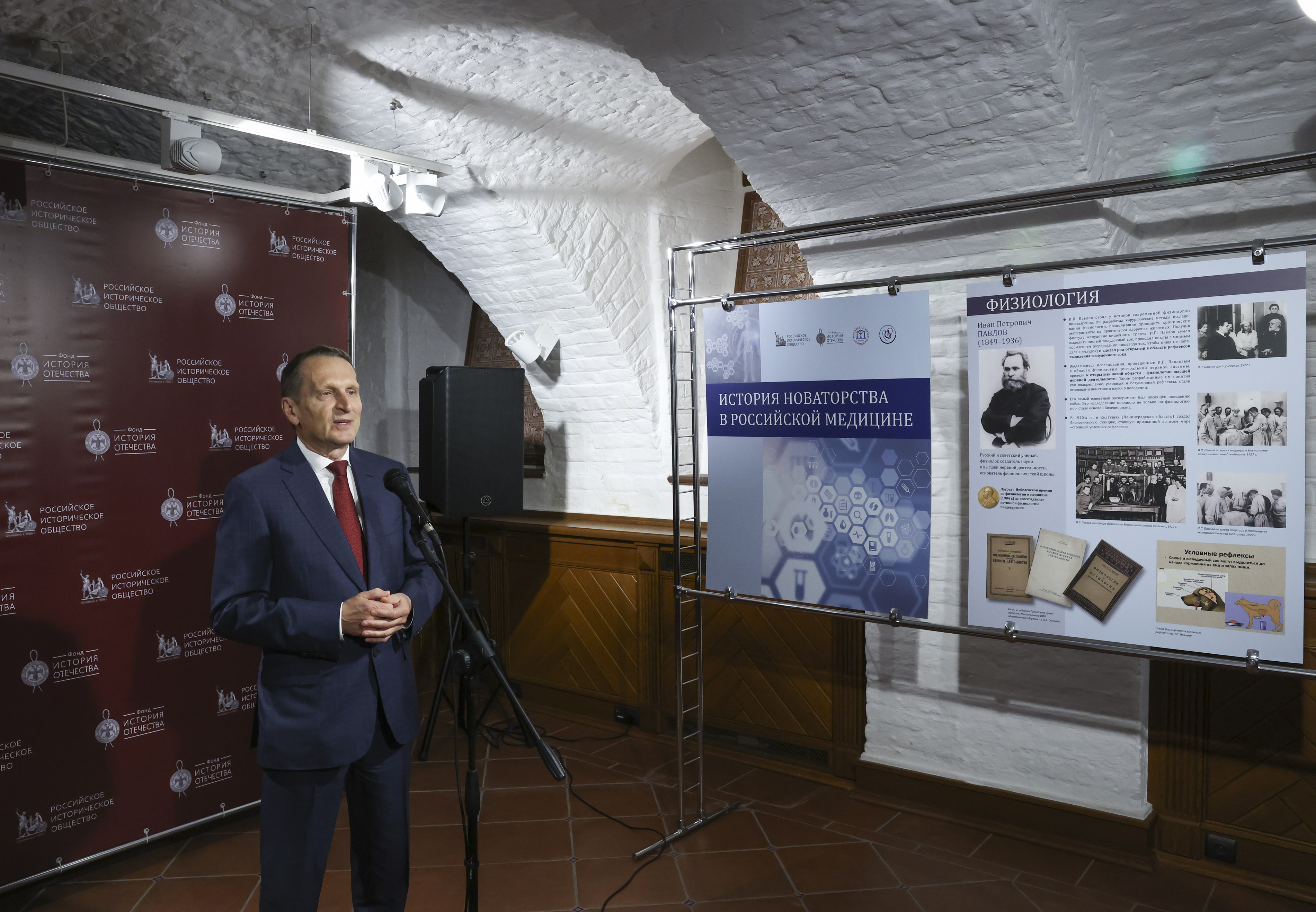 В рамках мероприятия в Доме РИО также открылась выставка «История новаторства в российской медицине», посвящённая достижениям отечественных врачей в хирургии, физиологии, иммунологии, эпидемиологии и других направлениях медицины. С выставочным проектом ознакомился Председатель Российского исторического общества Сергей Нарышкин:
