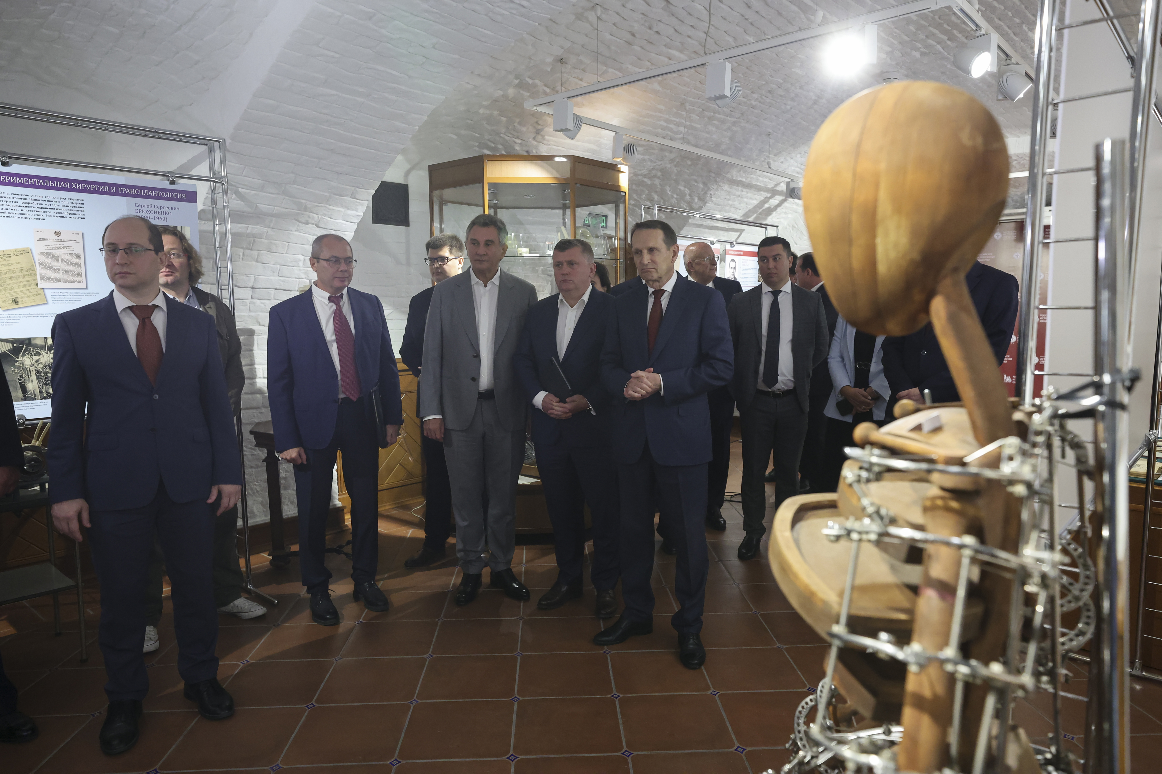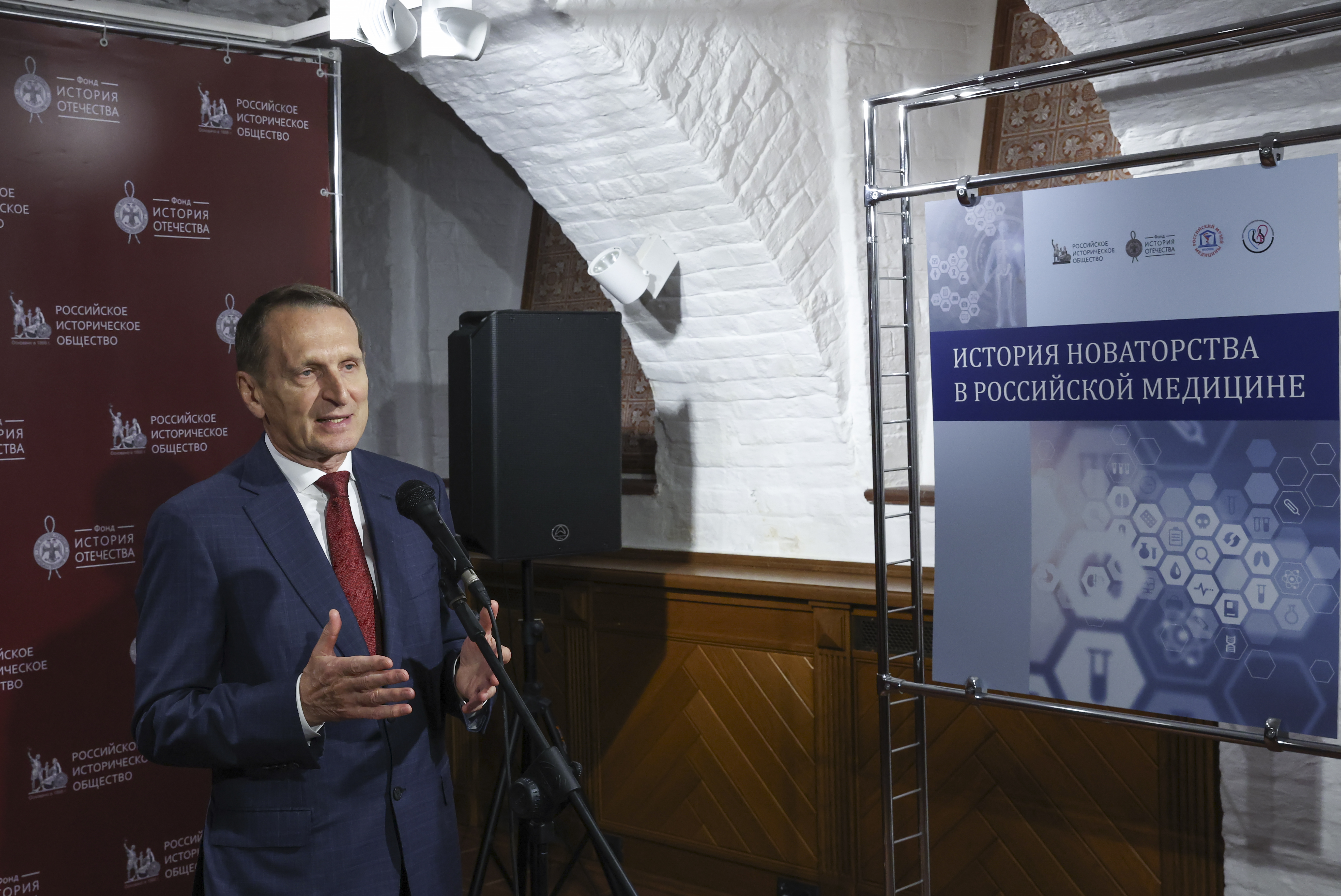 По словам Председателя РИО, российской медицине есть чем гордиться. Так, Николай Иванович Пирогов создал метод медицинской сортировки раненых, первым начал применять гипсовые повязки. Международное признание получили труды физиолога Ивана Петровича Павлова и микробиолога Ильи Ильича Мечникова, ставших лауреатами Нобелевской премии. А решение сложнейших задач по обеспечению искусственного кровообращения, вентиляции лёгких и развитие трансплантологии неразрывно связано с именами Сергея Сергеевича Брюхоненко и Владимира Петровича Демихова. Как отметил Сергей Нарышкин, непростым испытанием для советской медицинской науки стали события Великой Отечественной:
