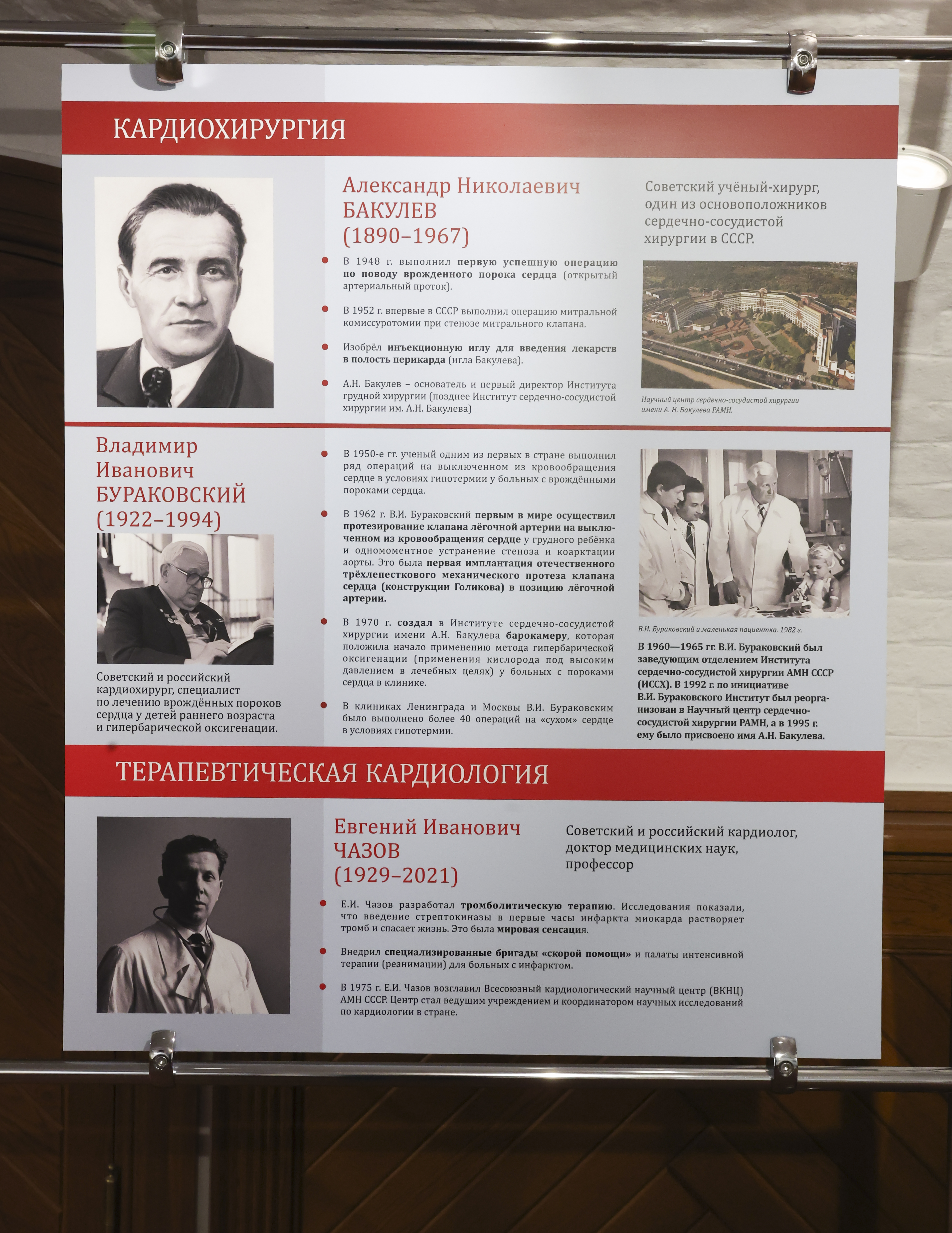 «Проблеме хирургического лечения сердечно-сосудистых заболеваний всего лишь 78 лет. В 1948 году Александр Николаевич Бакулев впервые осуществляет операцию по перевязке открытого артериального протока. <…> За последние несколько лет случился огромный прирост числа хирургических вмешательств на сердце. Мы снизили летальность от острого инфаркта миокарда в три раза».