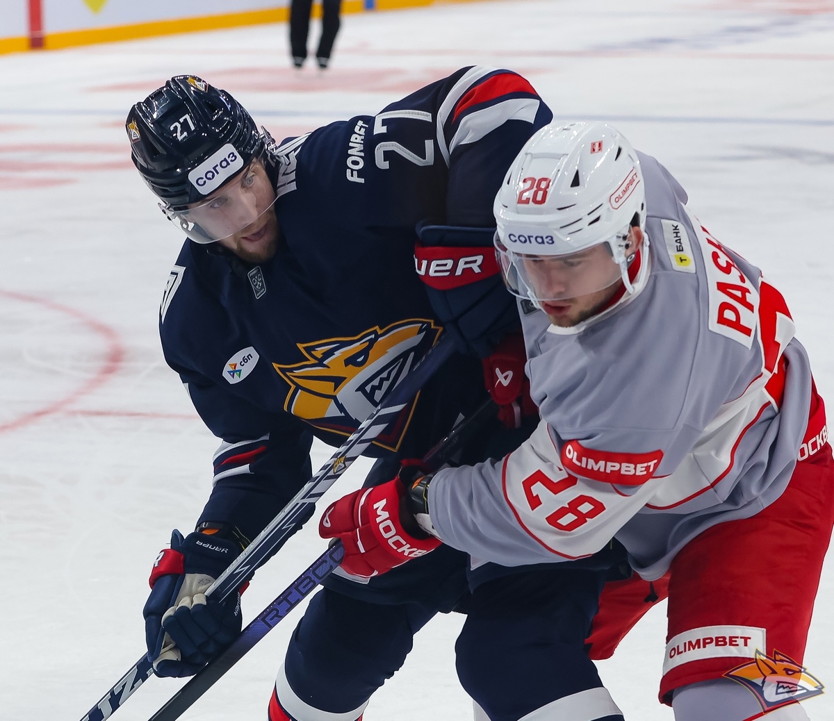 В третьем периоде «Спартак» немного отодвинул игру от своих ворот. Хотя и продолжал героически обороняться. В одном из эпизодов шайба после броска Робина Пресса угодила в штангу (скорректировал ее полет форвард Руслан Исхаков). Москвичи также провели несколько хороших позиционных атак, тот же Александр Беляев вполне мог оформлять дубль.