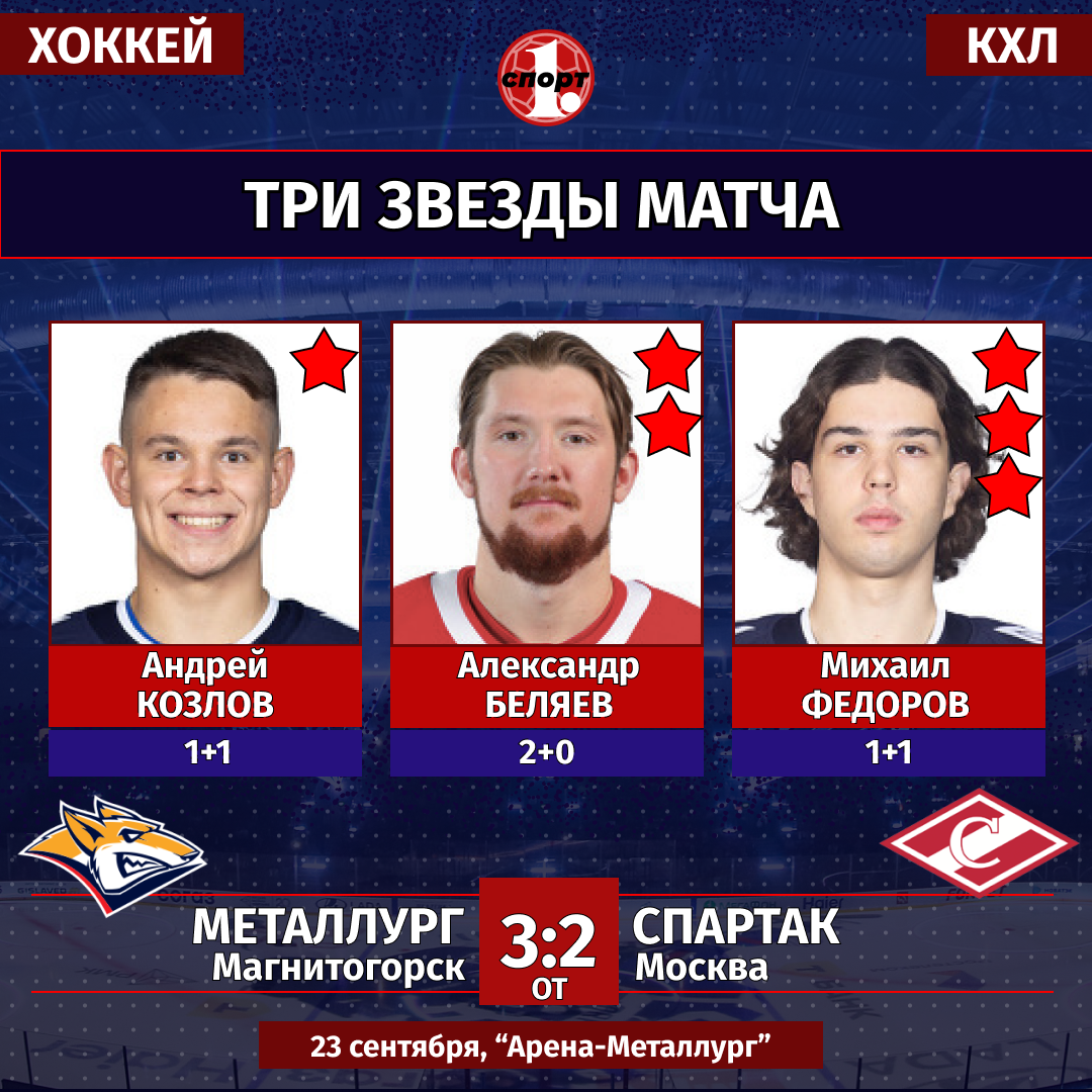 Хоккей. Чемпионат КХЛ. Сезон-2025/2026. 23 сентября. «Металлург» (Магнитогорск) — «Спартак» (Москва) — 3:2 от (0:1, 1:0, 1:1, 1:0).