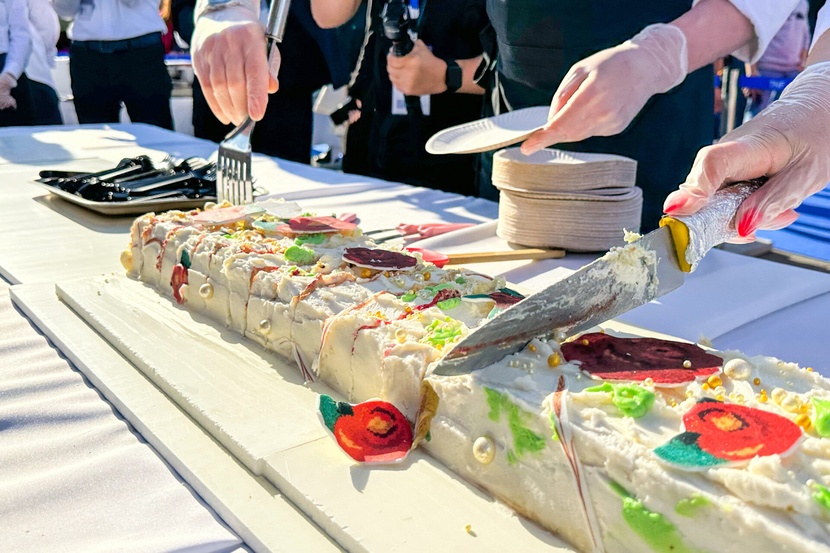 Грандиозный кулинарный шедевр в стиле тюменского махрового ковра стал завершающим «сладким блюдом» юбилейного Тюменского нефтегазового форума.