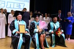 Ректор университета, профессор Анатолий Викторович Воронин вручил мантии и дипломы почетного доктора ПетрГУ Нине Николаевне Немовой, главному научному сотруднику лаборатории экологической биохимии Института биологии Кар НЦ РАН, действительному члену-корреспонденту РАН, заслуженному деятелю науки Российской Федерации; Михаилу Леонидовичу Гольденбергу, директору Национального музея Республики Карелия, канд. пед. наук, заслуженному деятелю культуры Республики Карелия; Николаю Владимировичу Федоренко, одному из самых опытных и успешных рыбоводов Республики Карелия.