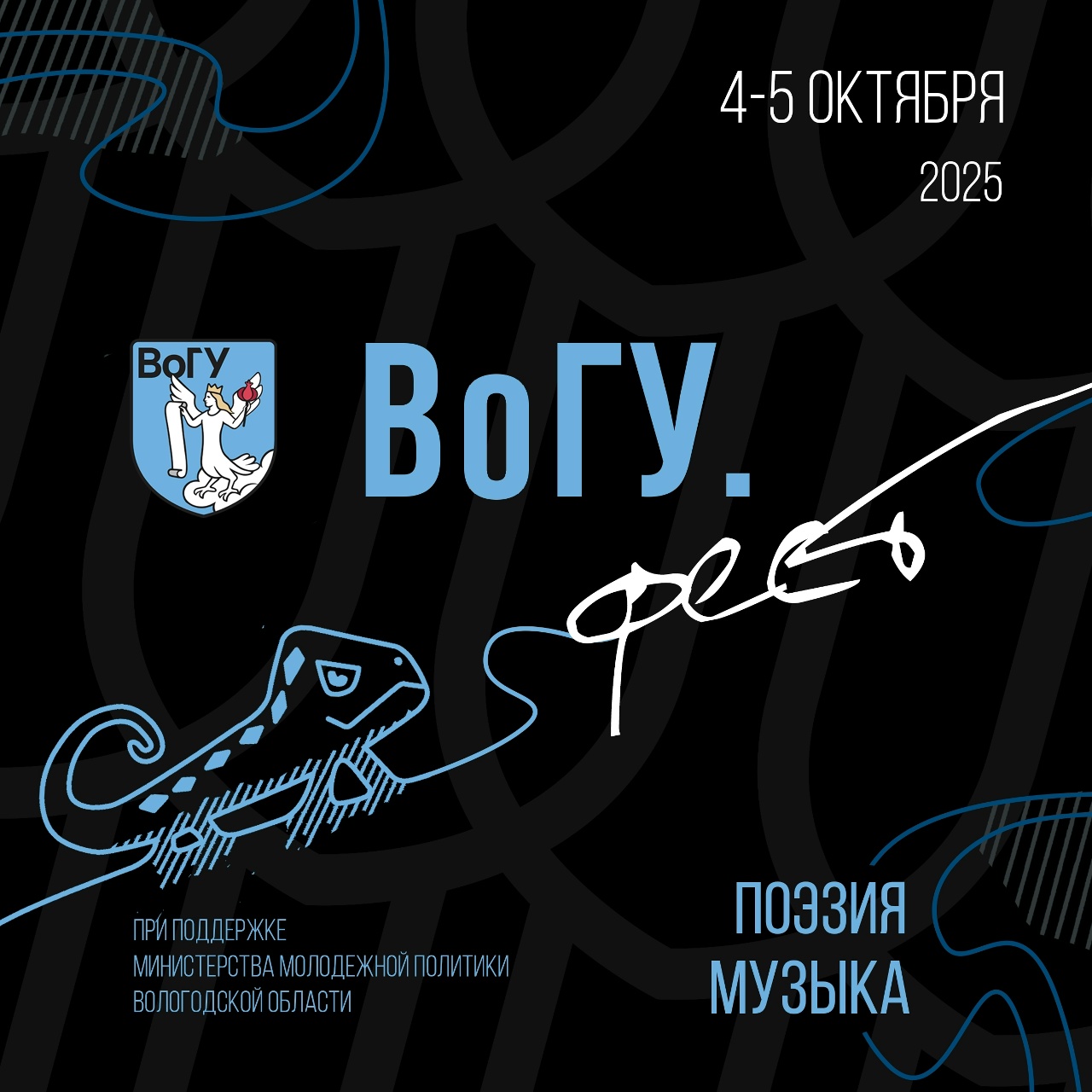 Вологодский государственный университет при поддержке Министерства молодежной политики области и Городских библиотек Вологды запускает масштабный фестиваль «ВоГУ.ФЕСТ». Он стал победителем Областного конкурса молодежных проектов Правительства области. Фестиваль направлен на поддержку и развитие творческого потенциала молодых жителей региона от 16 до 25 лет, обучающихся в колледжах, техникумах, лицеях и вузах. Участников ждут образовательные интенсивы от известных поэтов и музыкантов, а финалом станет большой концерт с приглашенными звездами.