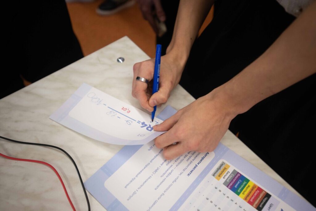 На станции «Не напрягайся» детей обучали основам физики. На примерах бытовых предметов ребята знакомились с понятиями «напряжение», «резистор» и «мультиметр», узнали о вольтаже батареек. Они получили представление об этих терминах и научились применять их на практике: юным изобретателям предложили запустить электроснабжение макета города, подбирая правильные параметры.