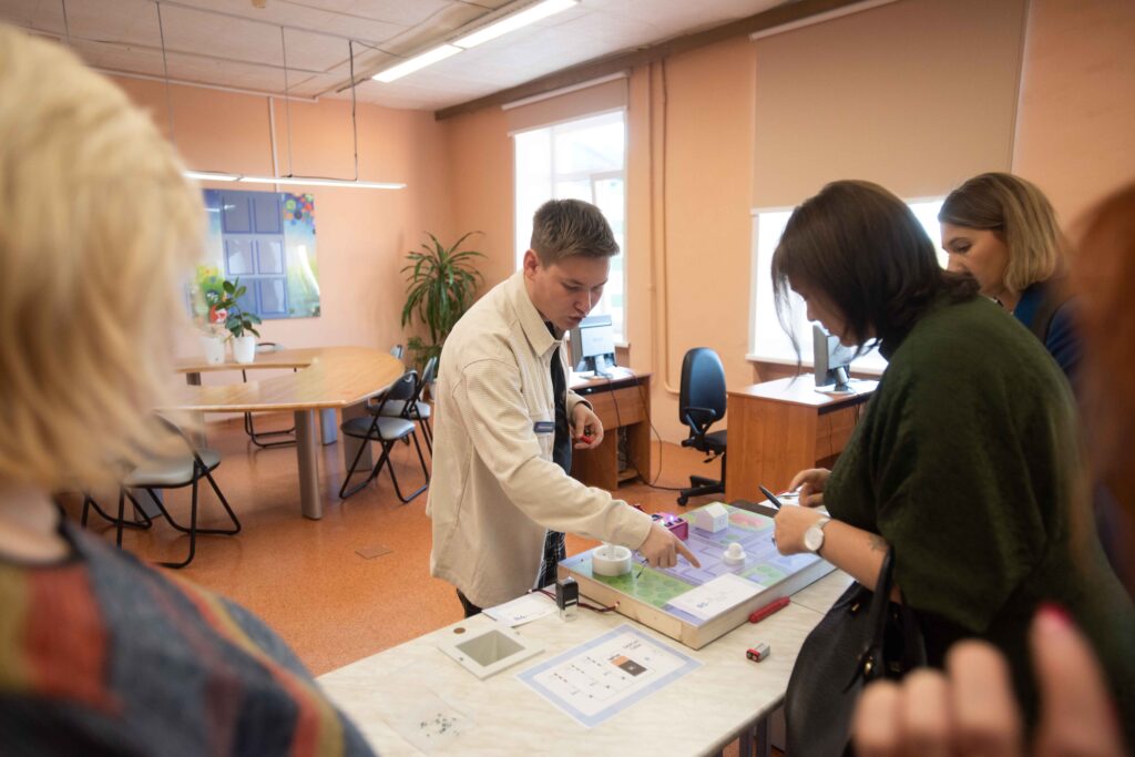 В ЦВР ребята работали в группах на пяти тематических станциях. Одна из станций «Я хочу от тебя идей» посвящена методам, которые помогают придумывать что-то новое. На площадке школьникам рассказали, как из окружающих нас вещей можно извлекать изобретательские приемы и принципы, как наблюдать за природой и находить в ней вдохновение для создания чего-то уникального.