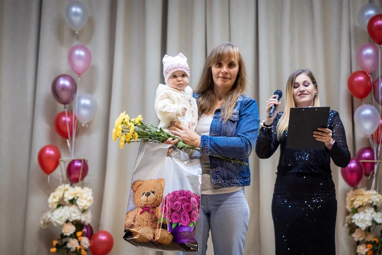 Со сцены поздравили десятерых старожилов в возрасте старше 80-ти лет. А самой старшей жительницей Мариинска, Екатерине Алексеевне Никитиной, исполнилось 92 года. По традиции, поздравили и самую молодую жительницу села — Дашеньку Карпову, ей всего семь месяцев. Кстати, Даша — седьмой ребенок в семье!