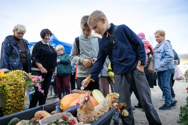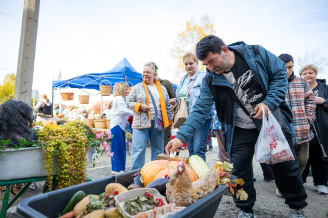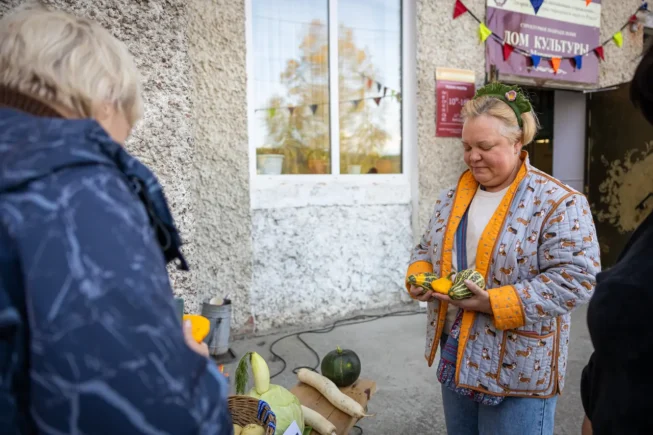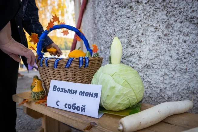 «Ого, какой необычный! Возьму-ка я его себе», «А вот этот отлично подойдет на семена!», «А что, правда можно взять себе хоть что?» — это на лавочку рядом с ДК поставили целую корзину кабачков и тыкв и подписали: «Возьми меня с собой». И любой желающий мог выбрать для себя бесплатно какой-нибудь овощ.