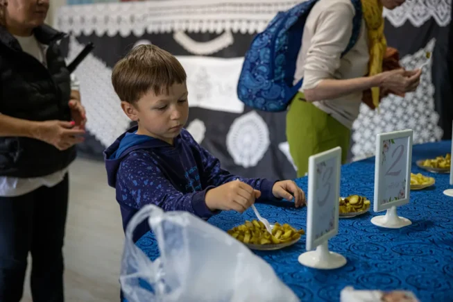 В час дня Дом культуры распахнул свои двери для всех желающих. В фойе с правой стороны расположился столик, на котором в небольших тарелках разместили пять видов соленых огурчиков: их засолили жительницы Мариинска. Люди с удовольствием подходили, пробовали и голосовали за самый вкусный, по их мнению, экземпляр (автор текста тоже решила лично проверить на вкус домашние заготовки хозяюшек и отдала свой голос за огурчики под номером один). В конце праздника наградили Ирину Морозову: ее огурцы признали самым вкусными.