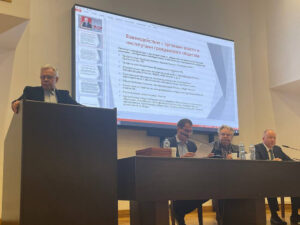 Сергей Мельников, заместитель директора по научной работе и общественным связям, представил доклад о внешних связях ИЭА РАН в 2024 г.: взаимодействие с властью, обществом, СМИ и международное сотрудничество.