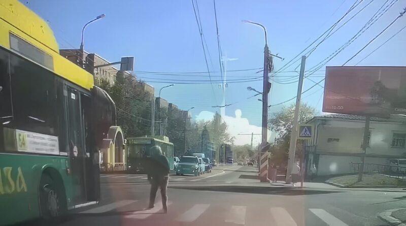 На видеоматериале видно, как автобус, следующий по маршруту №54, на перекрестке улиц Калинина и Чкалова, с превышением скорости проезжает на красный свет. В тот момент по «зебре» двигалась женщина, которая смогла вовремя уклониться и избежала столкновения. Автор ролика указал, что инцидент произошел приблизительно в 14:20 в районе Южной поляны, и подчеркнул: «Автобус чуть не сбил пожилую женщину».