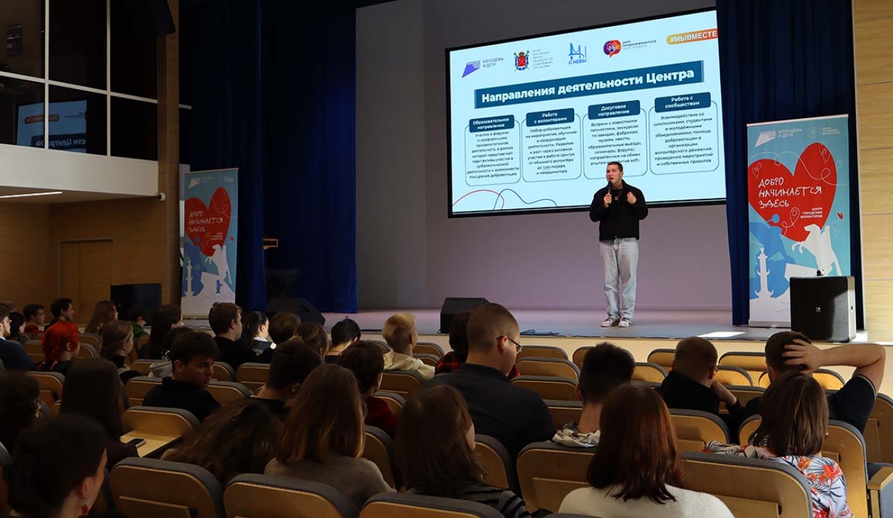 23 сентября в Актовом зале университета состоялась встреча с руководителем Центра городских волонтеров Санкт-Петербурга Никитой Дмитриевым. Это была уникальная возможность узнать из первых уст о том, как развивается волонтерское движение в нашем городе.