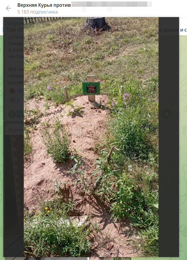 МОГИЛА ПАВШЕГО СМЕРТЬЮ ХРАБРЫХ МОРСКОГО ПЕХОТИНЦА ВИКТОРА ЧЕСНОКОВА В МУСУЛЬМАНСКОМ КВАРТАЛЕ НЫТВЕНСКОГО КЛАДБИЩА. СКРИНШОТ С ТГ-КАНАЛА T.ME/STOPMIGRANT59