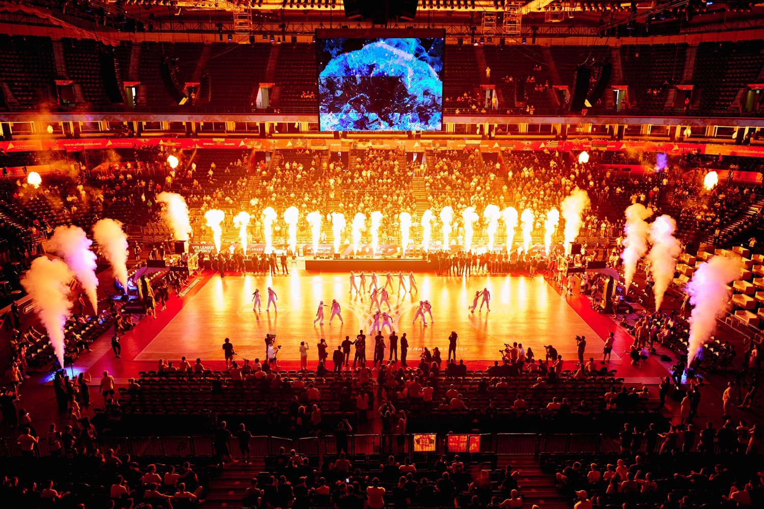 Во время срабатывания пушек все вокруг обдавало жаром – хотя бы баскетболистов предусмотрительно отвели подальше. Представители СМИ успели испытать всю мощь пылающего креатива на себе. Оставалось лишь разбегаться и наблюдать за шоу, прижавшись к трибунам. По возвращении в ложу прессы журналистов ждали горячие столы и кресла. На улице в сербский столице стоит 30-градусная жара, разогрев Суперкубка тоже получился знатный.