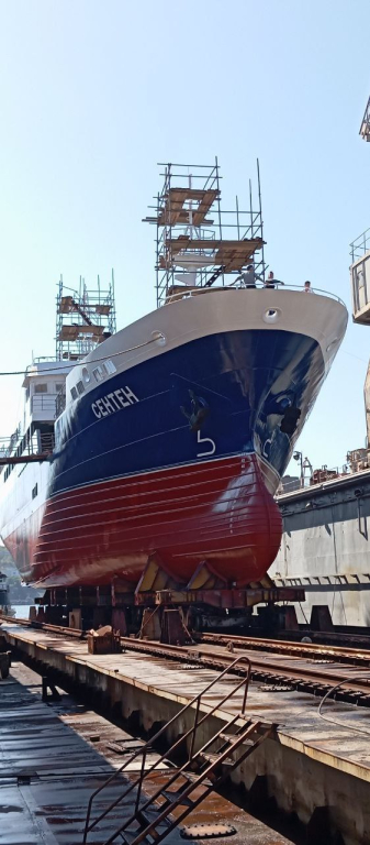 Сегодня, 25 сентября 2025 года, на площадке АО "Восточная верфь" состоялась торжественная церемония подъема Государственного флага Российской Федерации на промысловом судне "Аурум" и спуск на воду судна "Сентен". Постройка судов ведется со значительным опережением графика, сообщает Российский морской регистр судоходства. "С каждым годом, от судна к судну растет профессионализм всех участников процесса, а также слаженность и оперативность взаимодействия Регистра и верфи, что в итоге приводит к сокращению периода постройки", - отметил заместитель директора по техническому наблюдению Регистра Игорь Малов. Напомним, краболов "Аурум" проекта 03141 был спущен на воду в июне 2025 года. Судно предназначено для промысла краба и креветки, оборудовано ловушками для ведения лова. Хранить улов будут в RSW-танках с охлажденной морской водой. Вместимость трюма — 257 куб. м. Управлять краболовом будет экипаж из 21 человека. Мореходные качества и функционал нового судна обеспечат эффективное и безопасное ведение промысла в сложных метеоусловиях бассейнов Охотского и Берингова морей. В прошлом году по проекту 03141 построены и сданы в эксплуатацию краболовы "Пума" и "Андрей Басаргин". Кроме того, в настоящее время на Восточной верфи идет строительство еще трех судов данного проекта. Напомним также, краболовы проекта 03141 строятся на "Восточной верфи" с 2019 года. В проект заложена концепция универсального модульного комплекса. Он может использоваться как для добычи и перевозки живого краба, так и замораживать продукцию в море и транспортировать ее на берег. Судно также можно использовать как ярусолов и креветколов, оно имеет неограниченный район плавания, а ледовый класс позволяет регулярно эксплуатировать его в мелкобитом льду толщиной до полуметра.