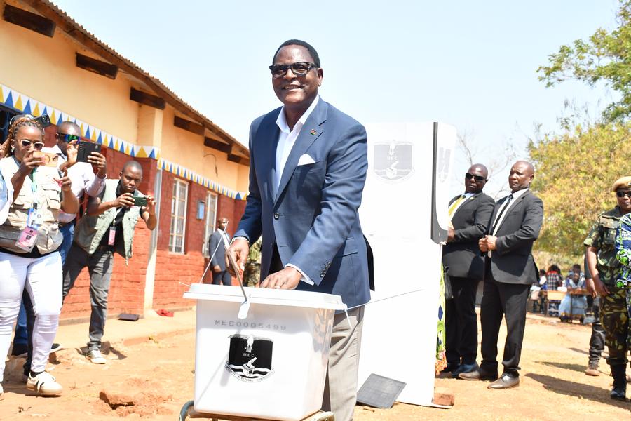 16 сентября, Лилонгве. Действующий президент Малави Лазарус Чаквера голосует на избирательном участке. /Фото: Синьхуа/