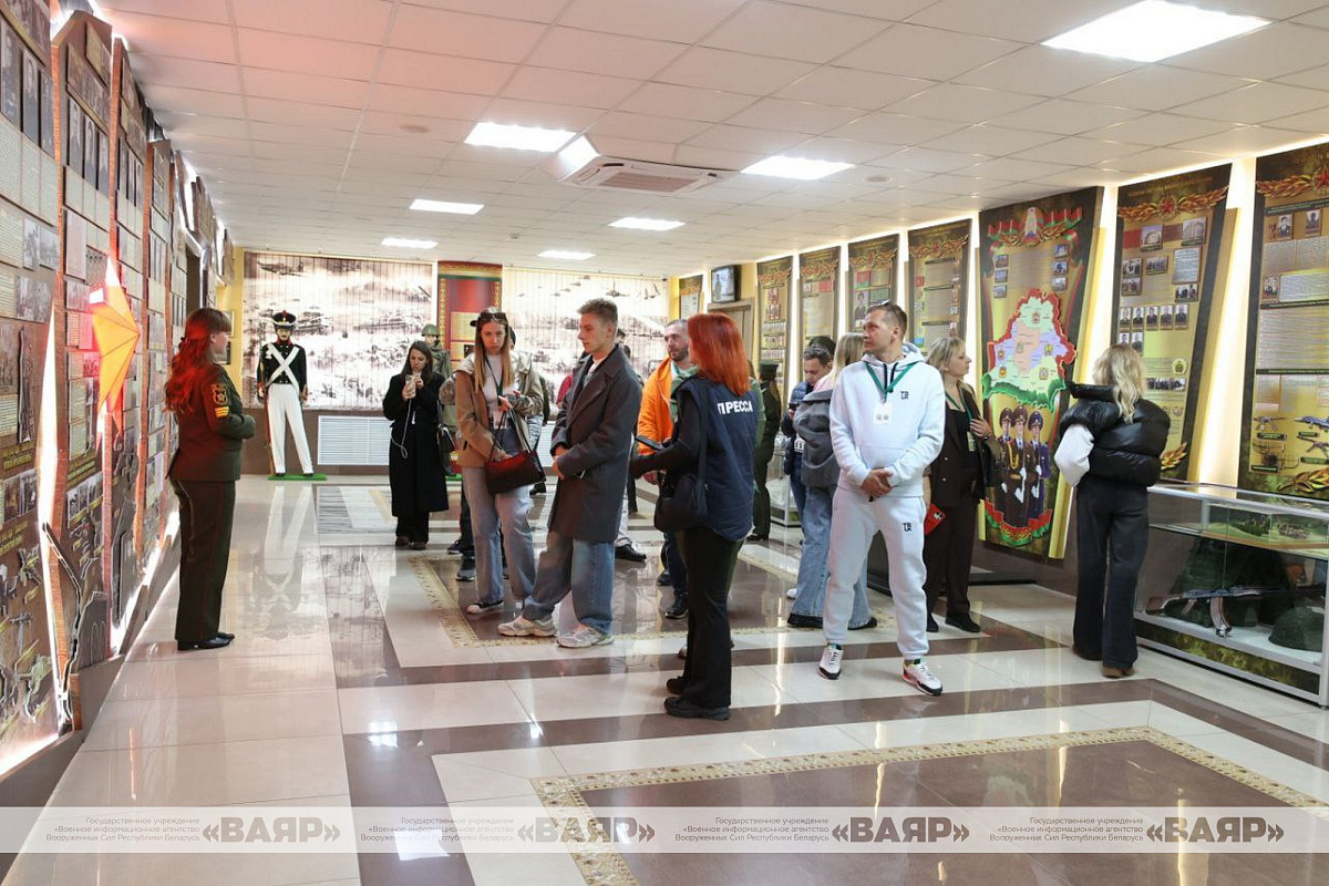 Блогеры заселились в казармы и отправились в курсантскую столовую. Сразу же после приема пищи участникам форума провели экскурсию по территории главного военного вуза страны.
