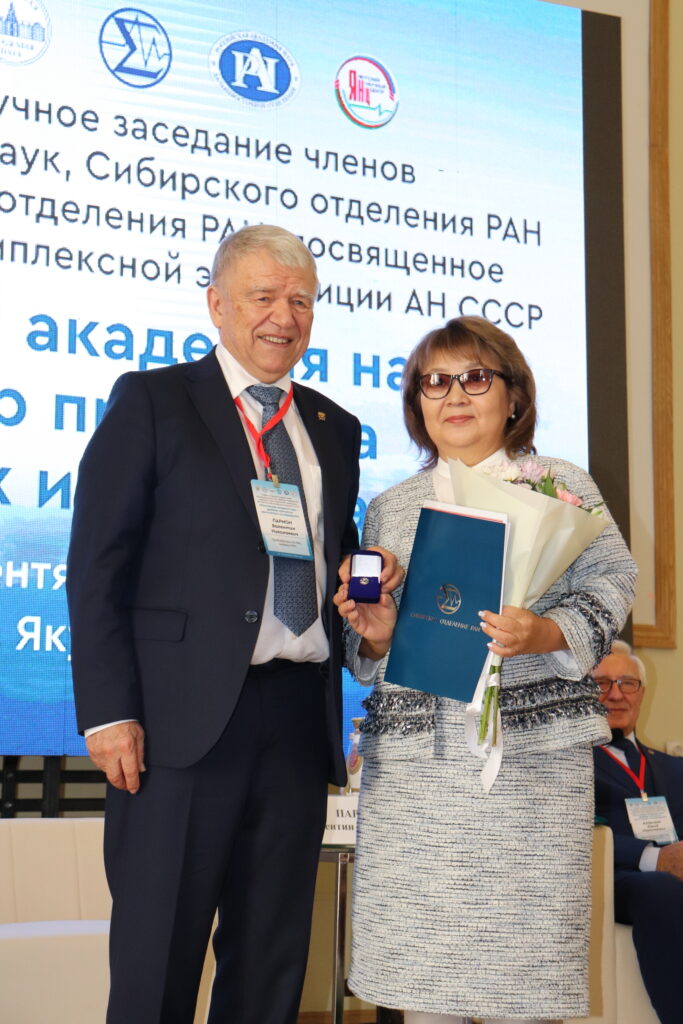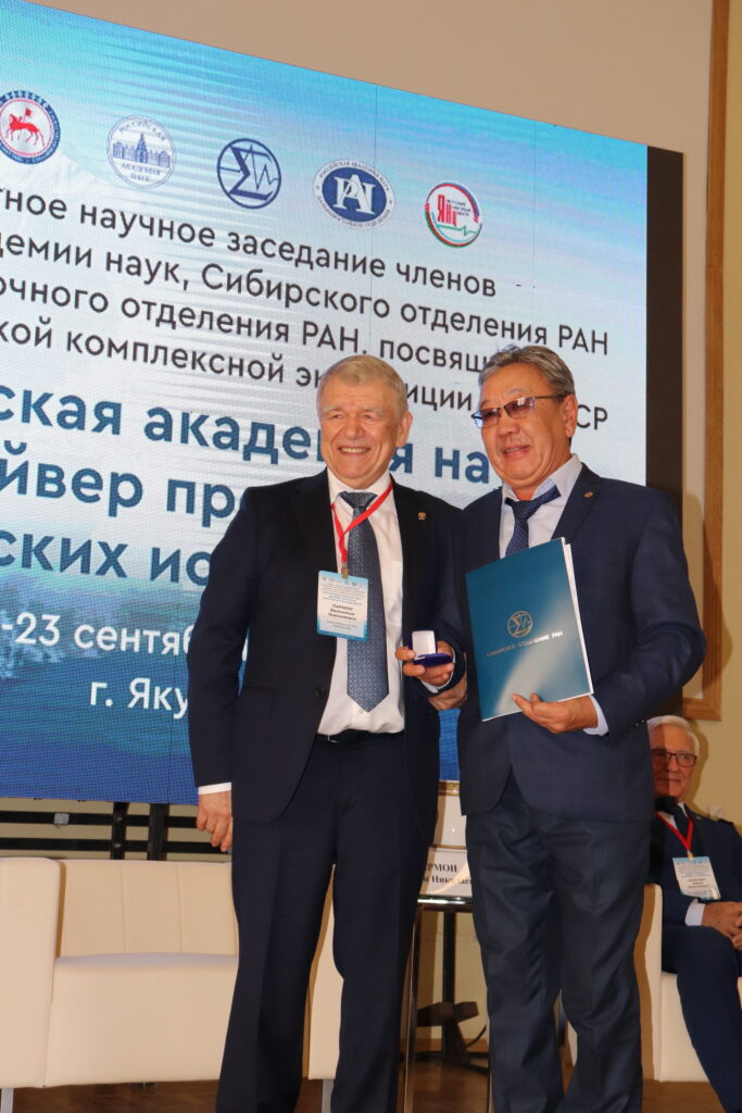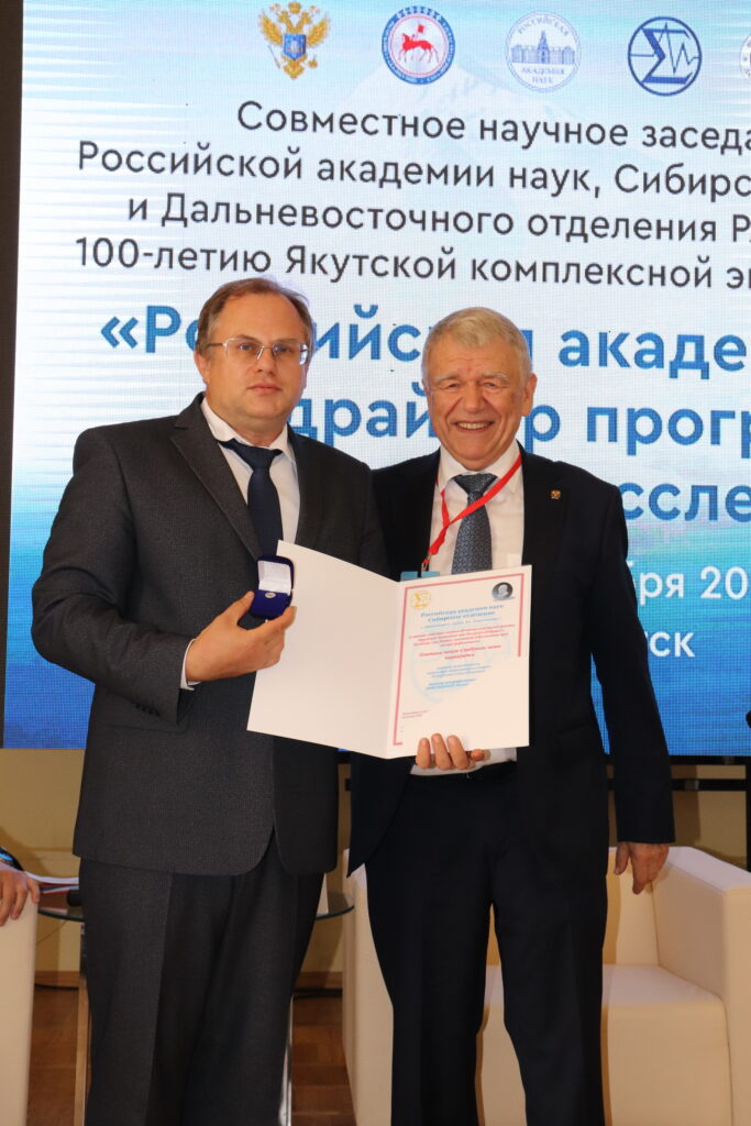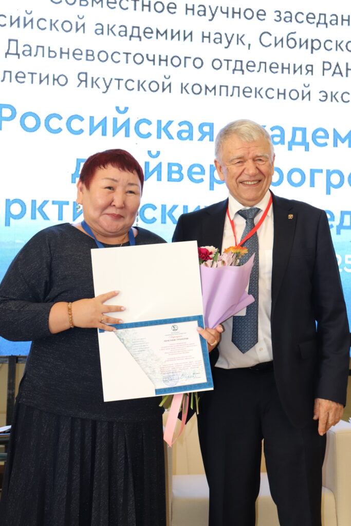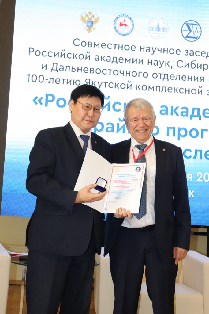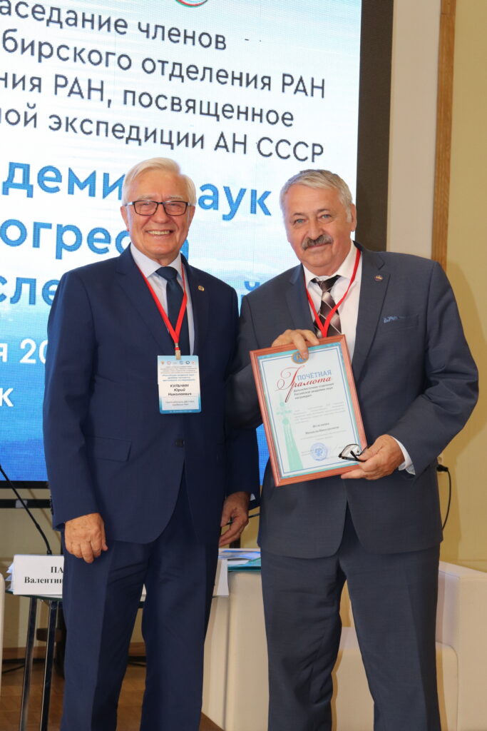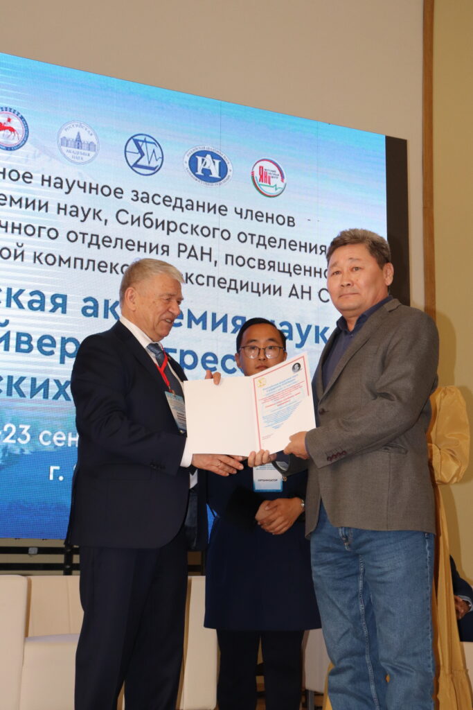 Валентин Николаевич передал Благодарственное письмо Главе Республики Саха (Якутия) Айсену Николаеву за оказанную помощь в организации совместного научного заседания.