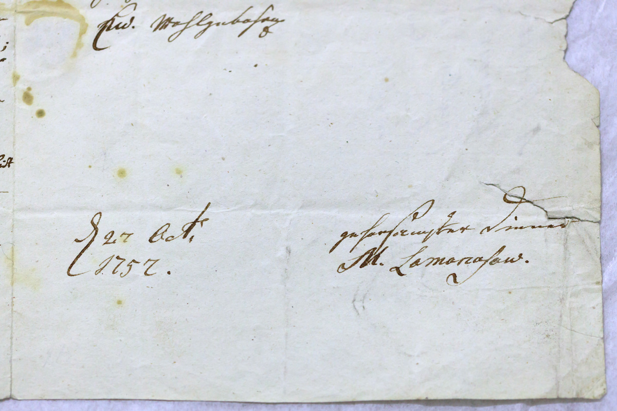 Фото: Мария Говтвань, РГБ Фрагмент письма Михаила Васильевича Ломоносова к академику Якову Яковлевичу Штелину