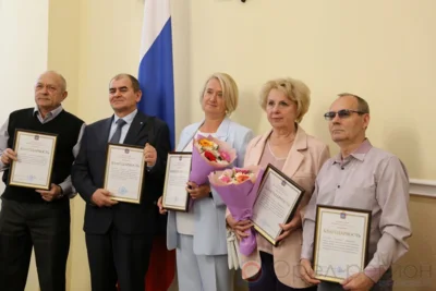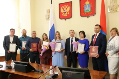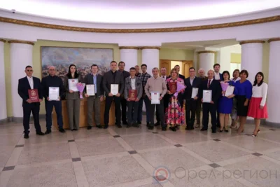 Затем Леонид Музалевский и Вадим Тарасов вручили представителям ведущих машиностроительных предприятий Орловщины награды губернатора Орловской области и Орловского областного Совета народных депутатов.
